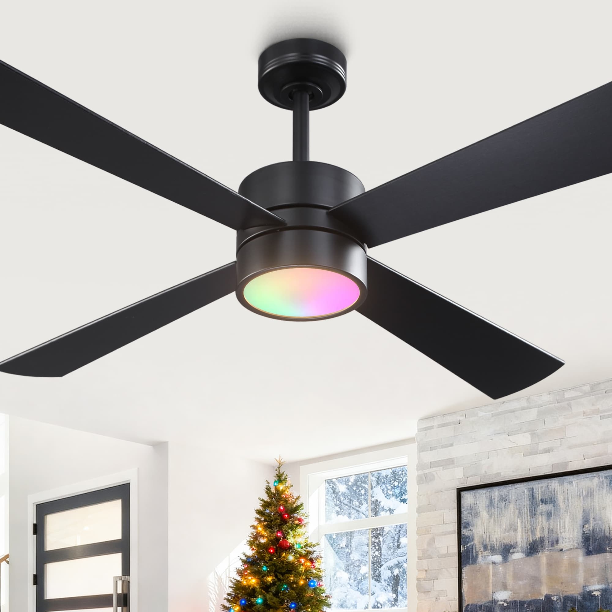 52" Black/ Distressed Brass Dimmable RGB Smart Ceiling Fan with Light and Remote, App Control