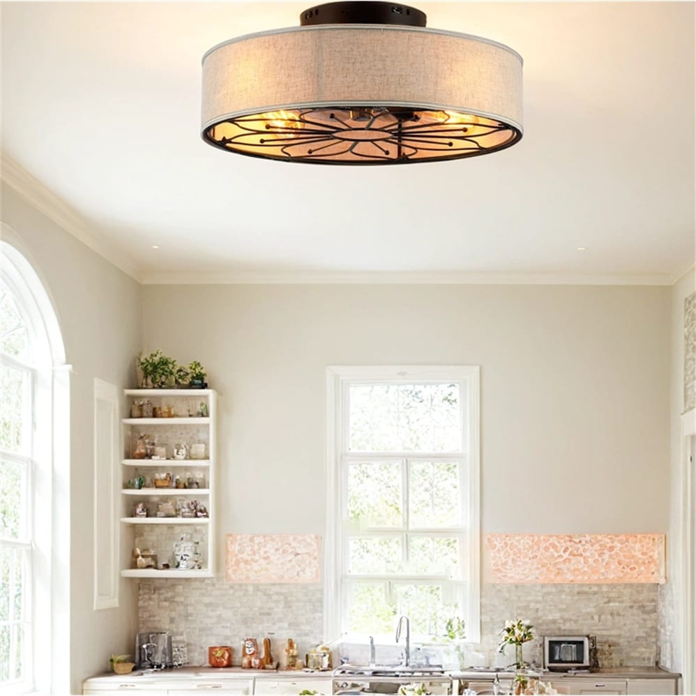 20" Lotus Design Fabric Farmhouse Bladeless Ceiling Fan,No Bulbs