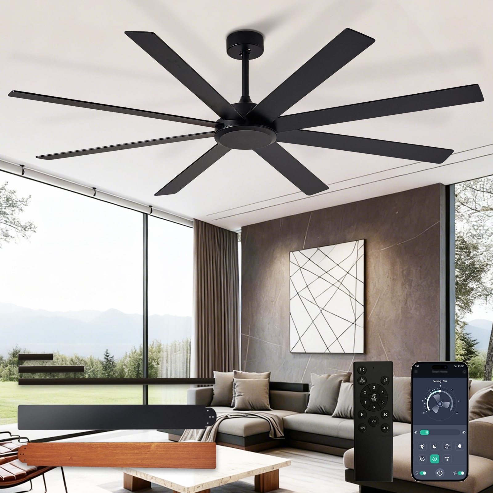 Large Ceiling Fan without Light - 8-Blade, Remote App Control, Dimmable 3CCT LED, Quiet DC Motor