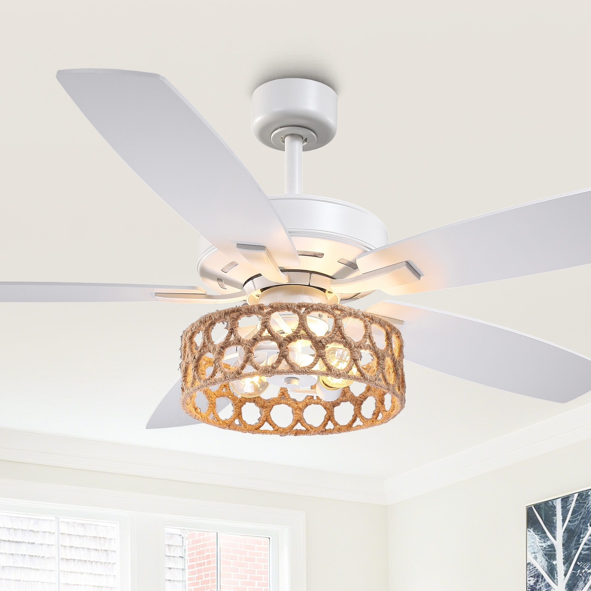 52" 5-Blade 2-Light Industrial Ceiling Fan with Light
