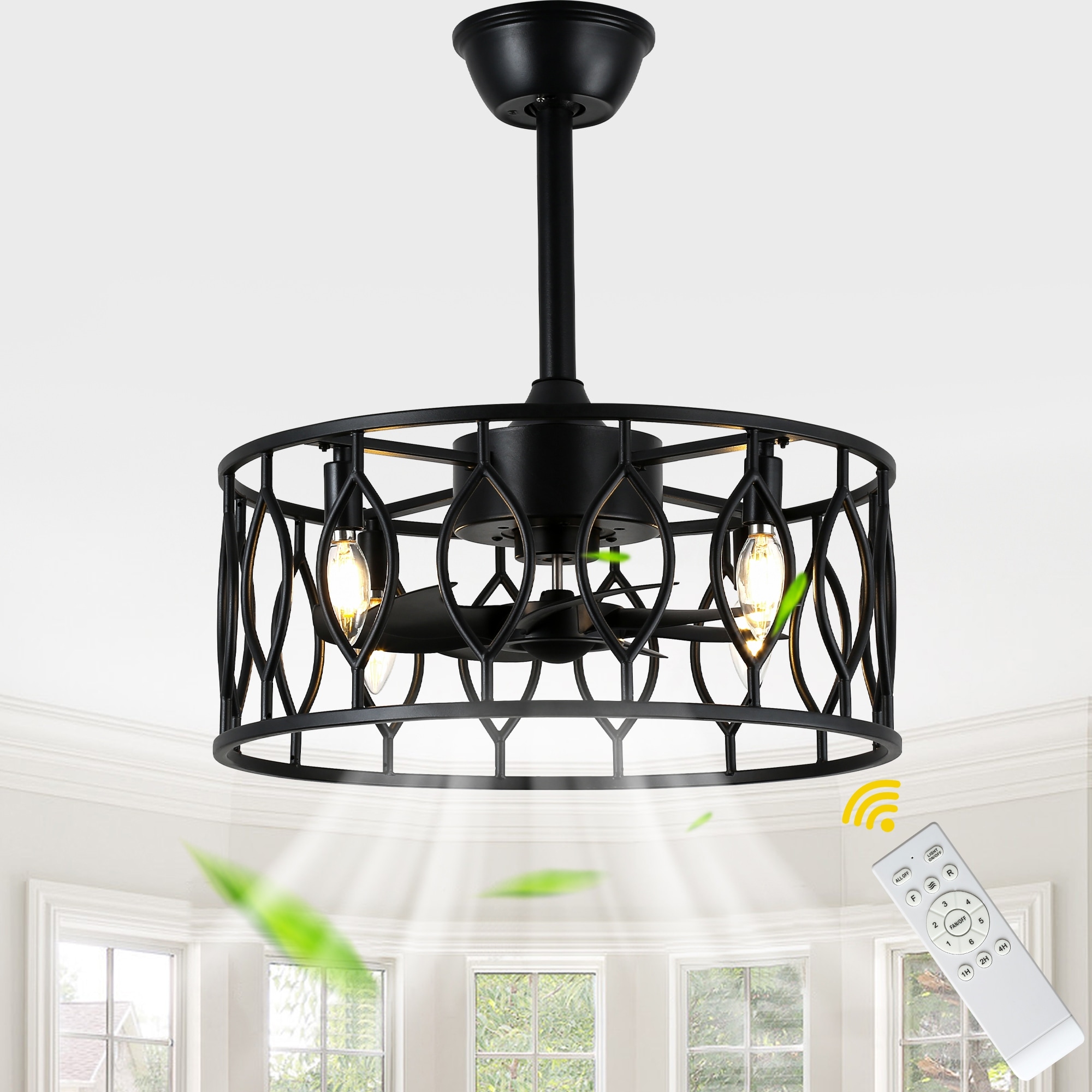 18 in. Indoor Caged Ceiling Fan with Lights, Reversible DC Motor and Remote Control for Small Bedroom