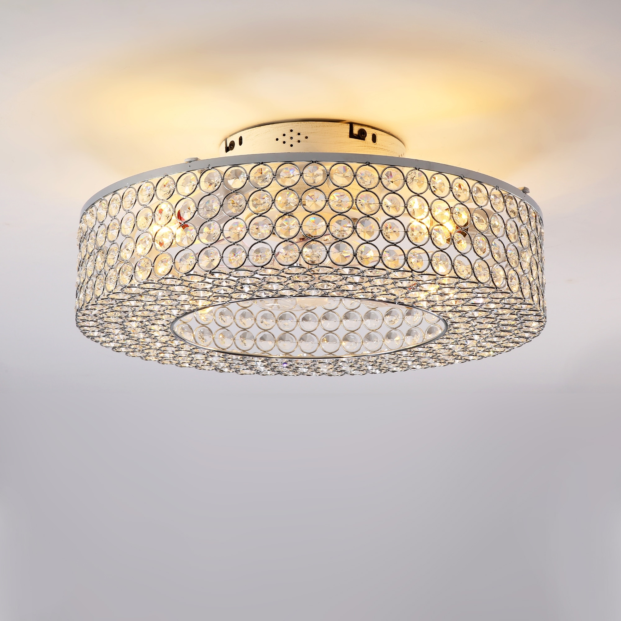 LunaDrift 19.6" Crystal Chrome Ceiling Fan with Light & Remote, Flush Mount, 6-Speed Quiet DC Motor - Modern Glam Chandelier Fan