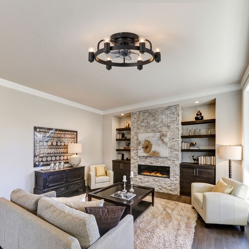 20 in. Black Flush Mount ceiling fan with light and Remote