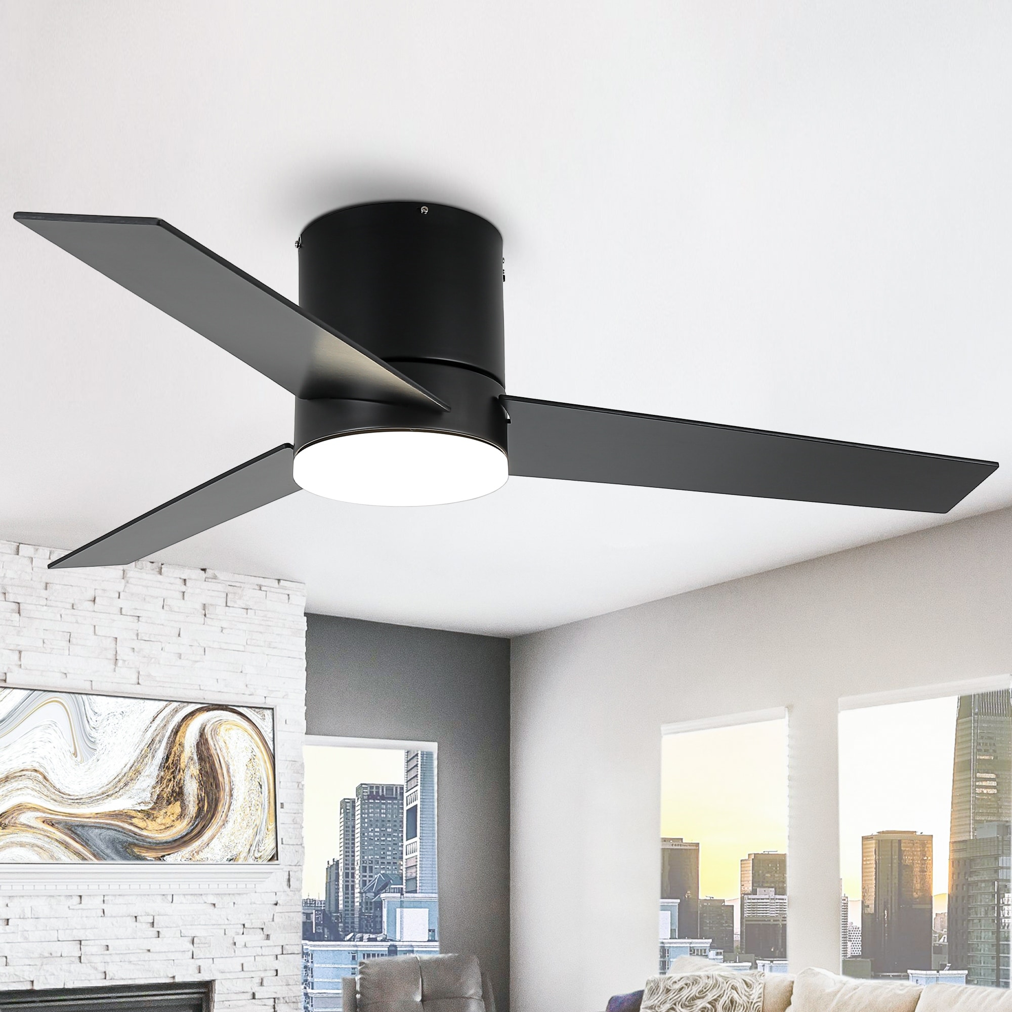 48" Matte Black Dimmable LED Flush Mount Ceiling Fan with Remote