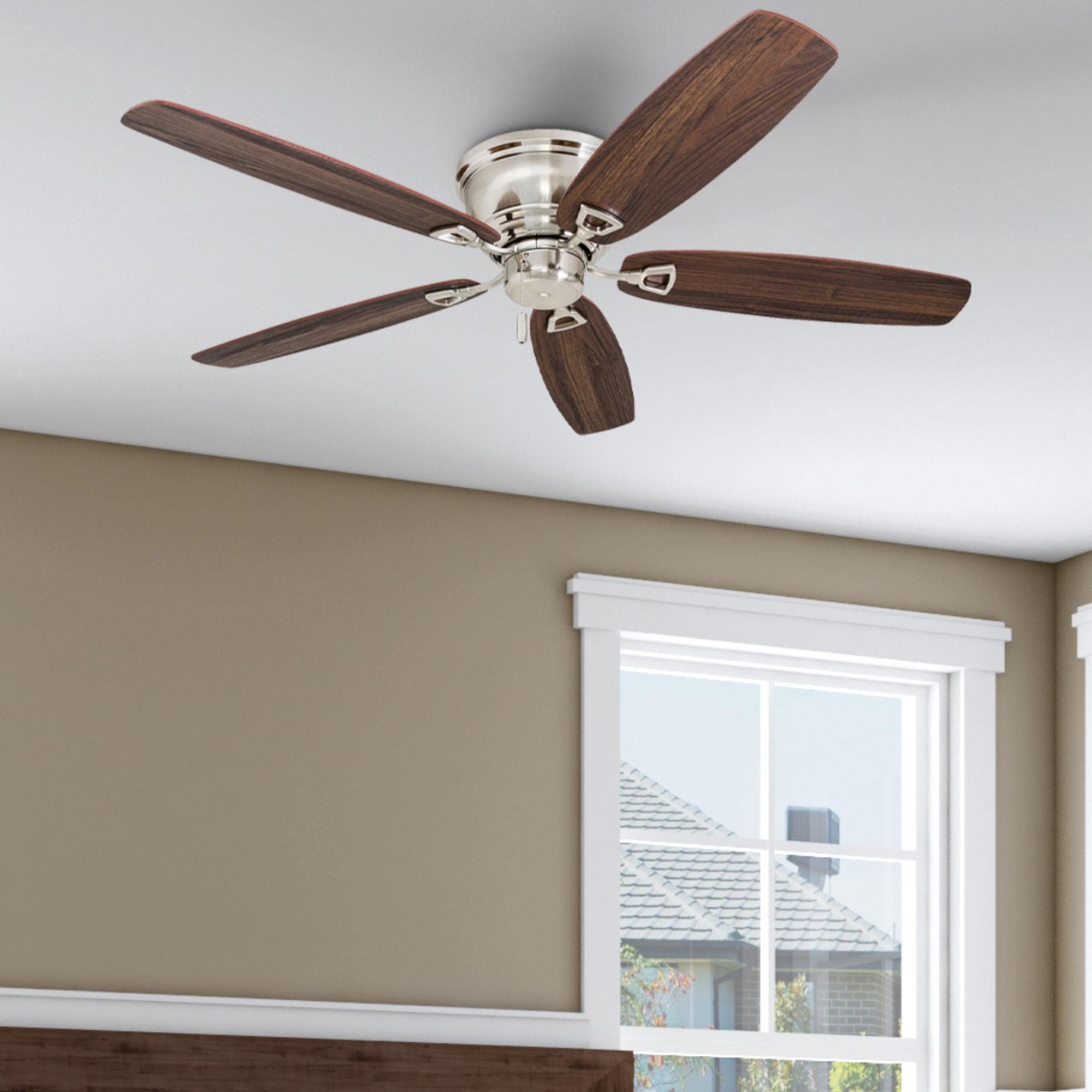 Wood Blade Ceiling Fan with Reversible DC Motor and 6-Speed Remote