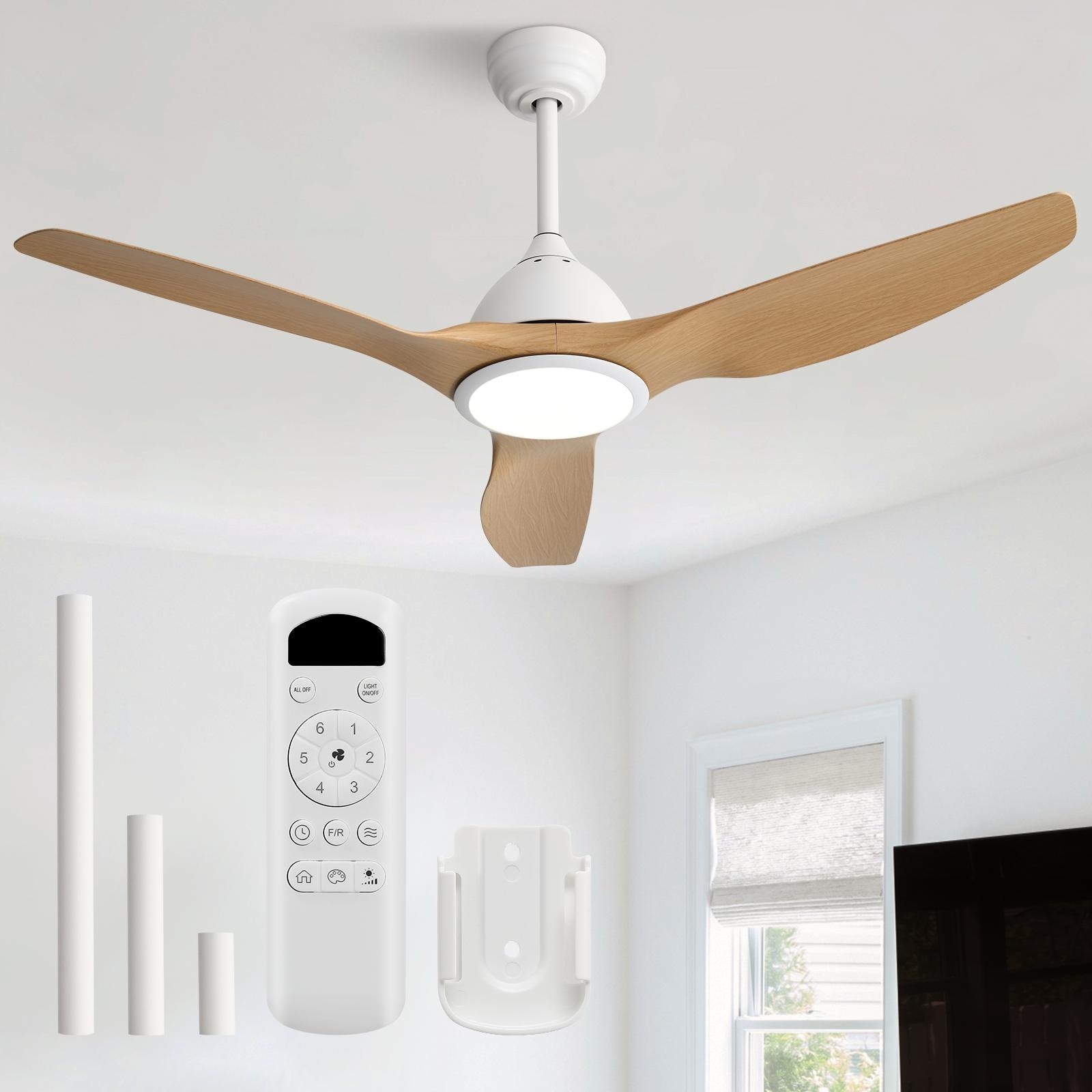52 Inch Ceiling Fan with Light 22W 3 Color Dimmable LED Memory Function Ultra Quiet Reversible DC Motor 1H 4H 8H Timer