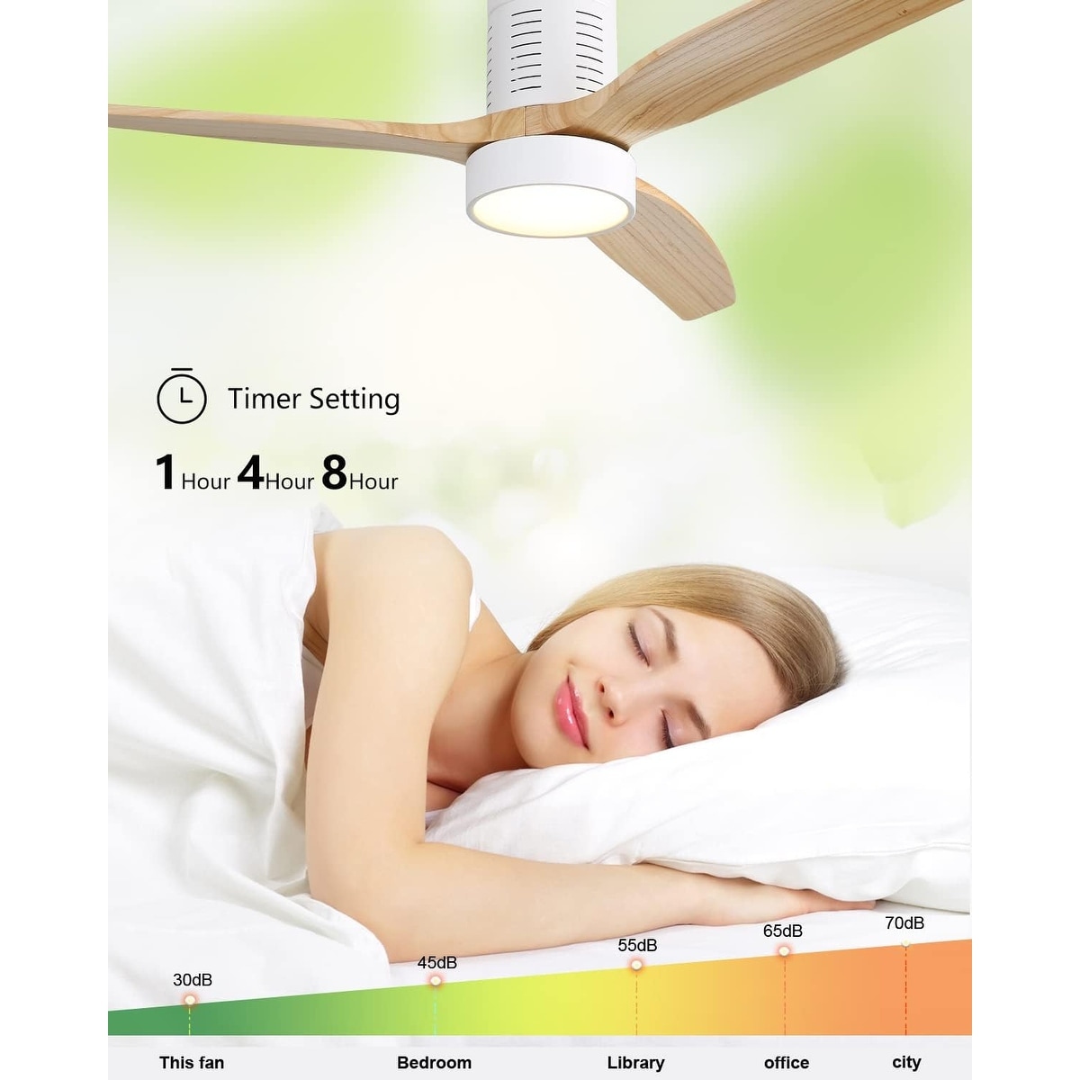 Sofucor 52 inch Solid Wood Flush Mount Ceiling Fan with Lights and Remote, Compatible with Alexa/Google/App, Quiet DC Motor