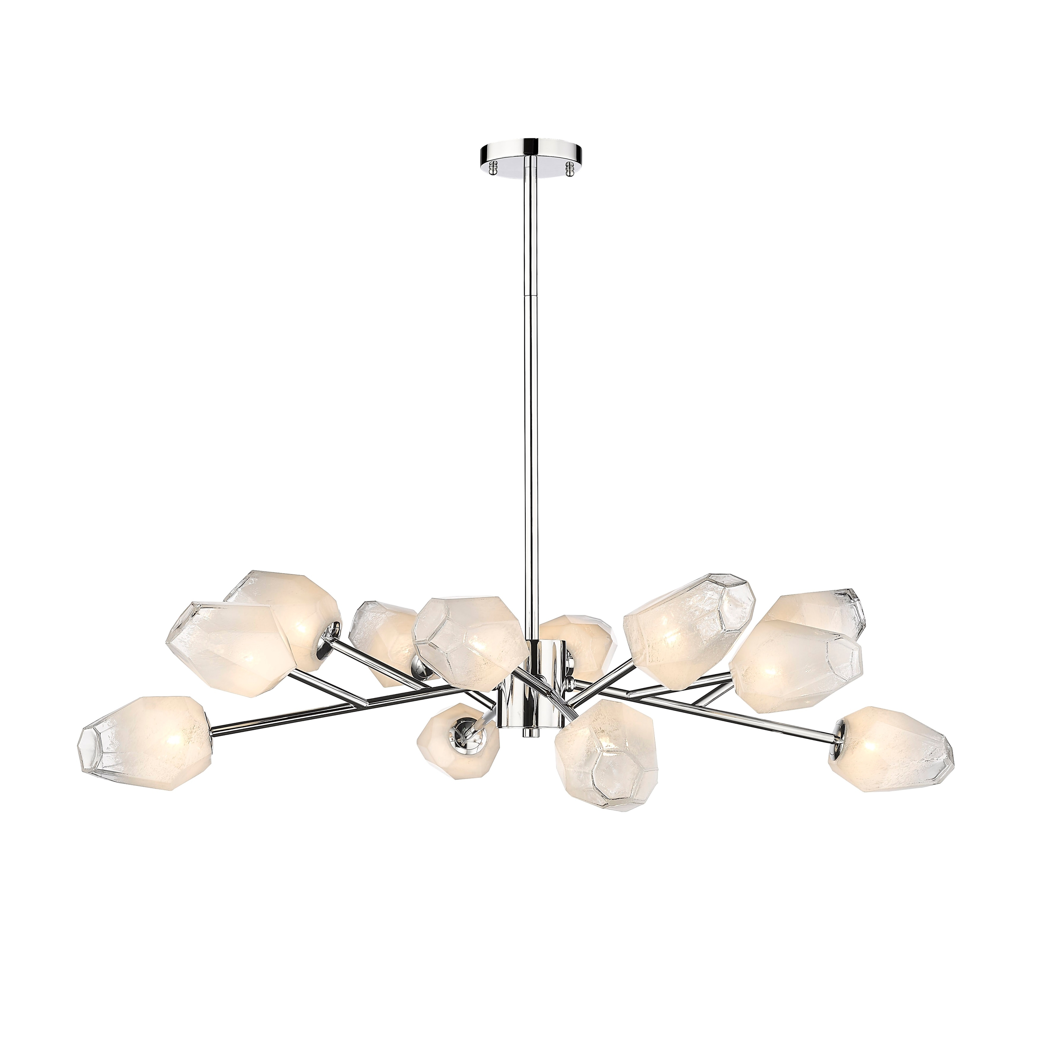 12-Light Chrome Chandelier With White Glass Shades