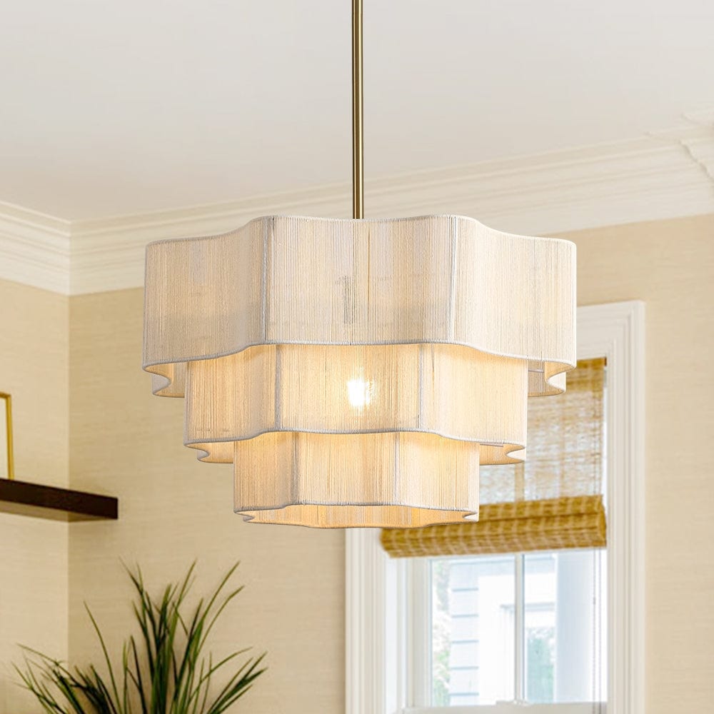 Woven Ivory String 3-Tier Round Lantern Chandelier 19.7in Brass