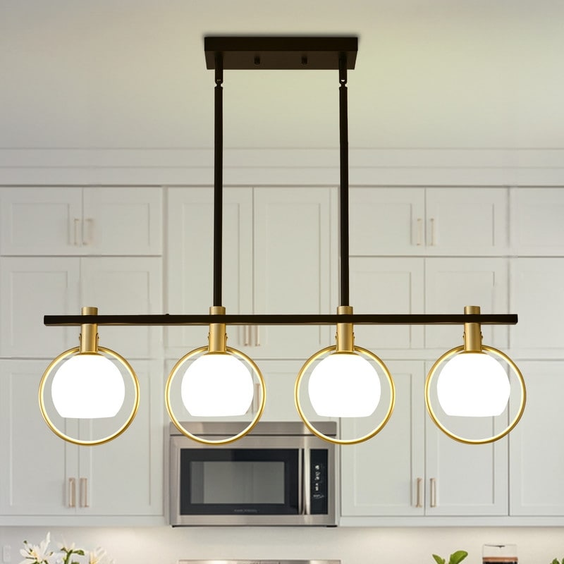 Gold Black Chandelier Modern Dining Room Light Fixture 4-Light Kitchen Island Mid Century Chandelier with Milk Glass Globe Shade