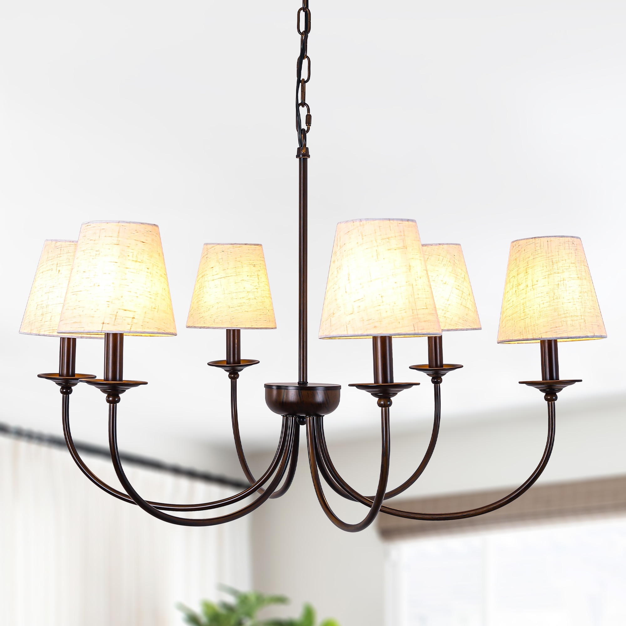 CurveCurio 30" 6-Light Farmhouse Black Chandelier with Fabric Shades, Adjustable Chain Pendant Light for Living Room