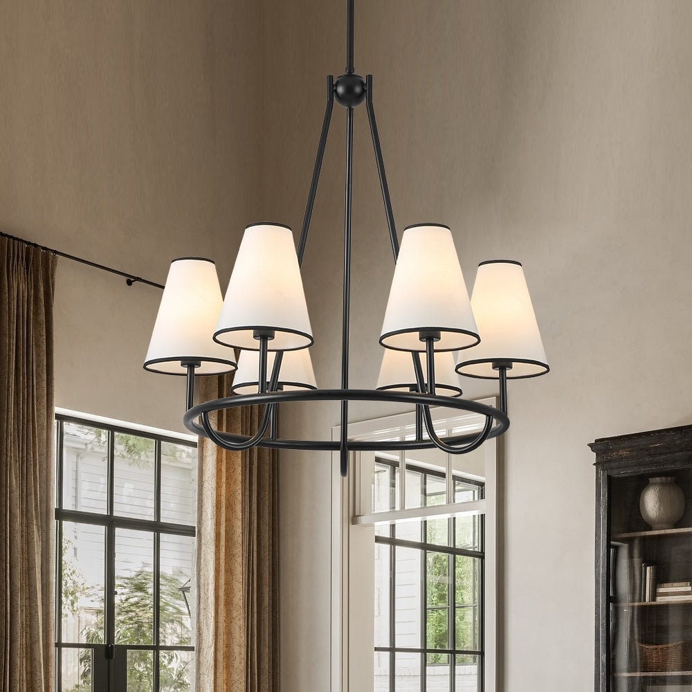 Transitional 6-Light White Fabric Cone Circular Chandelier 25.6 in