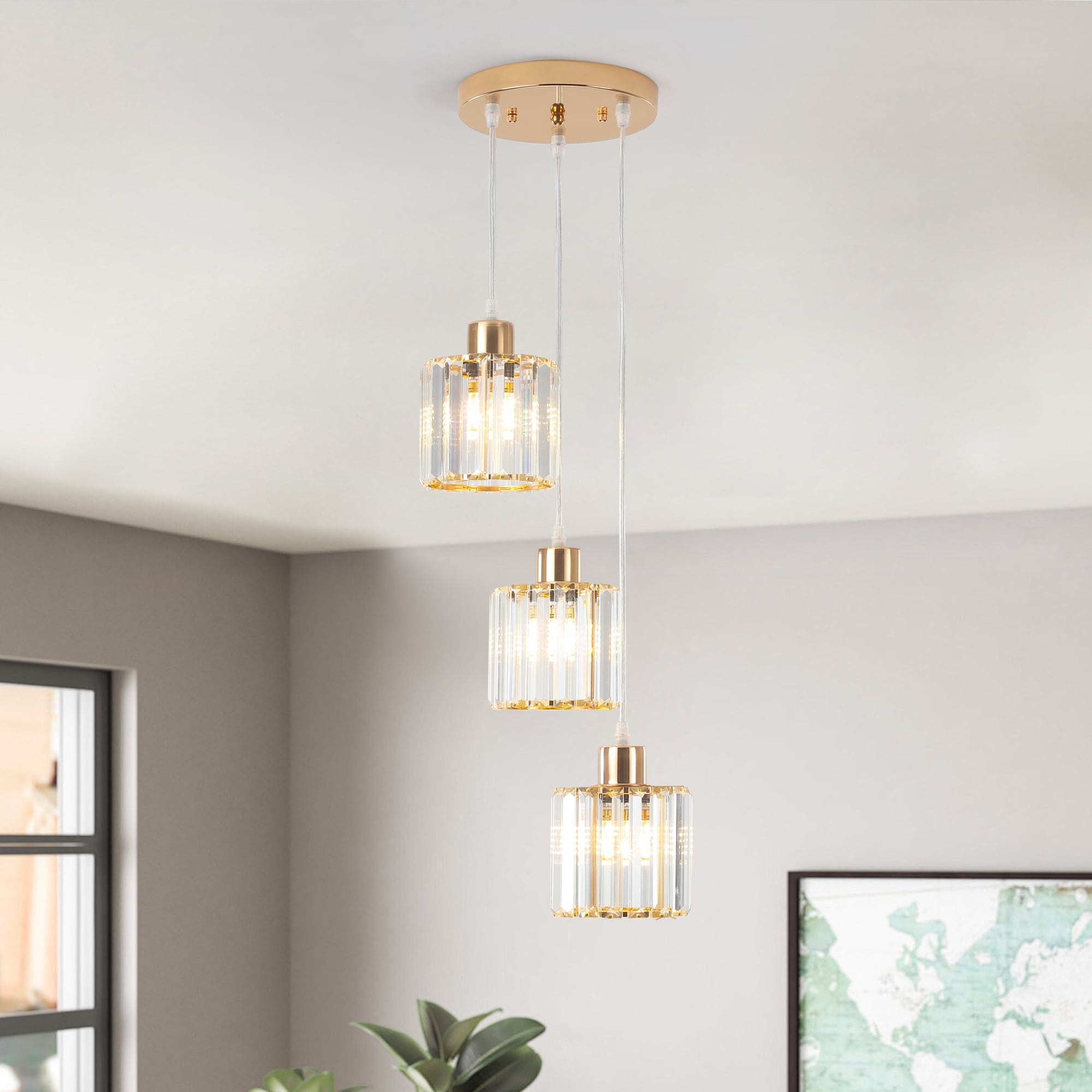 3-Light Modern Metal Hanging Pendant Light Ceiling Light Chandelier with Crystal Cover for Kitchen Island
