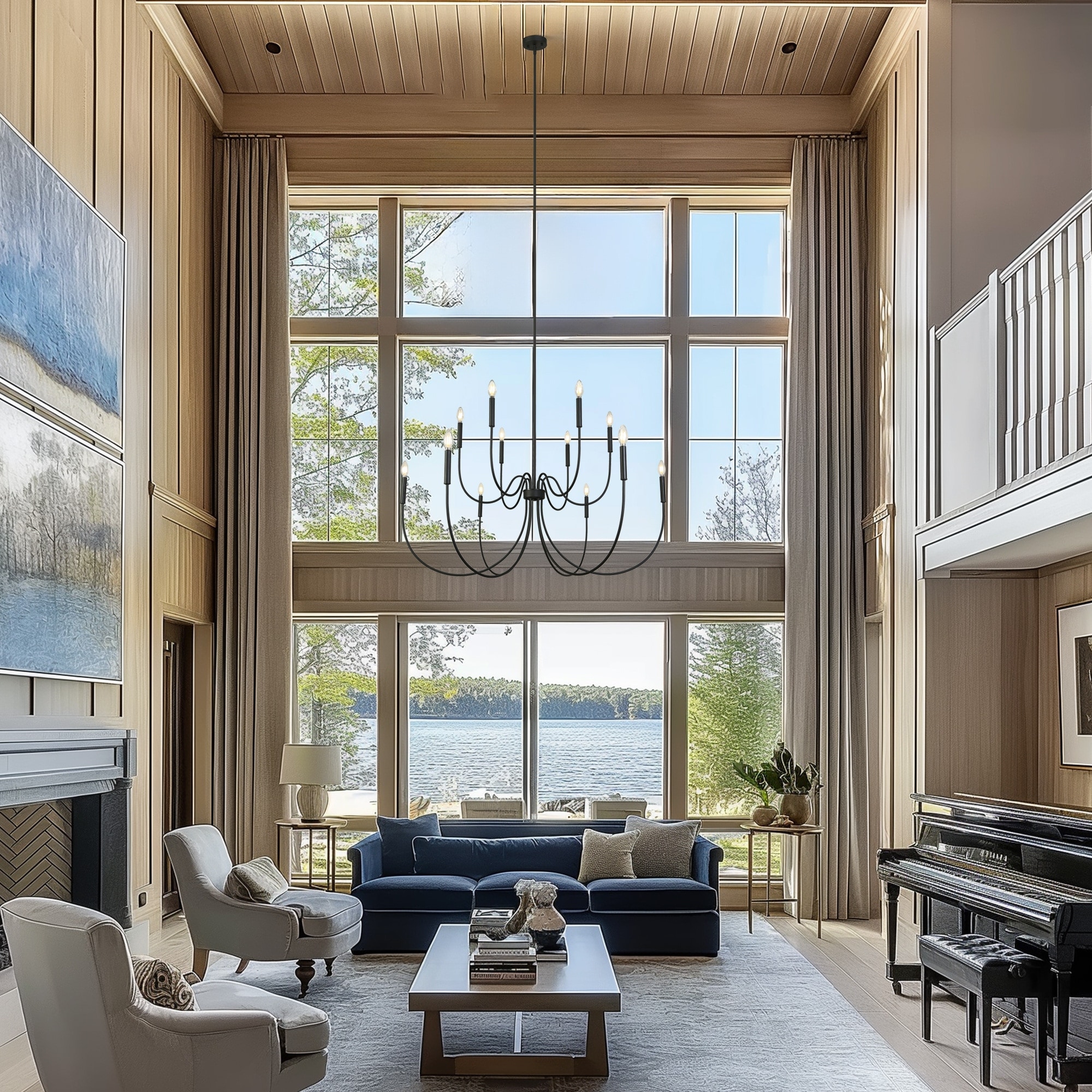 Modern Farmhouse 12-Light Large Black Chandelier Candle Light for Living Room Foyer - D 47.2" x H 27.6"