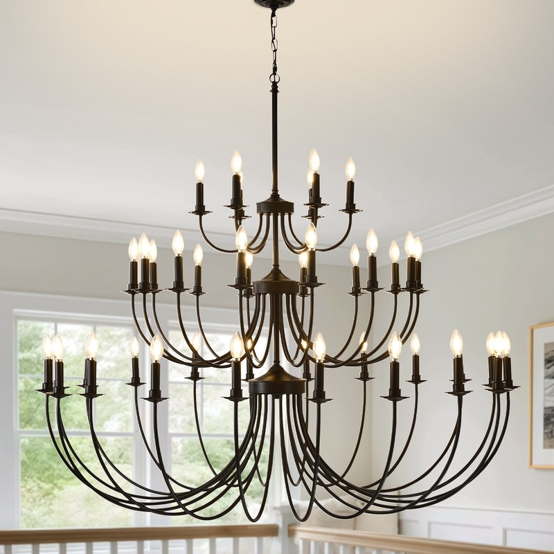 Black Chandelier Large Farmhouse Chandeliers Vintage Candle Hanging Light Fixture for Living Room Foyer Staircase