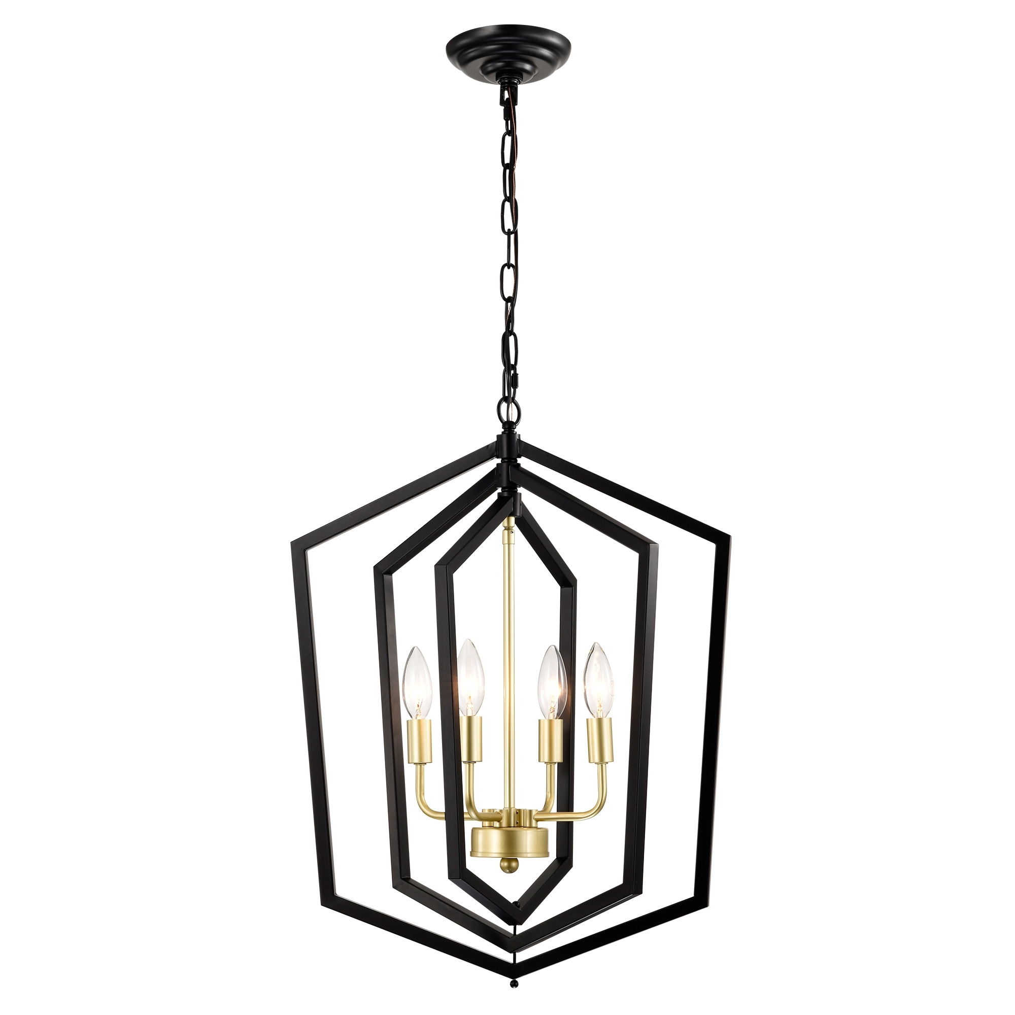 18.11" Matte Black + Gold Modern Metal Industrial Chandelier, 4-Light Kitchen Chandelier Light Fixture(E12 Bulbs Not Included)
