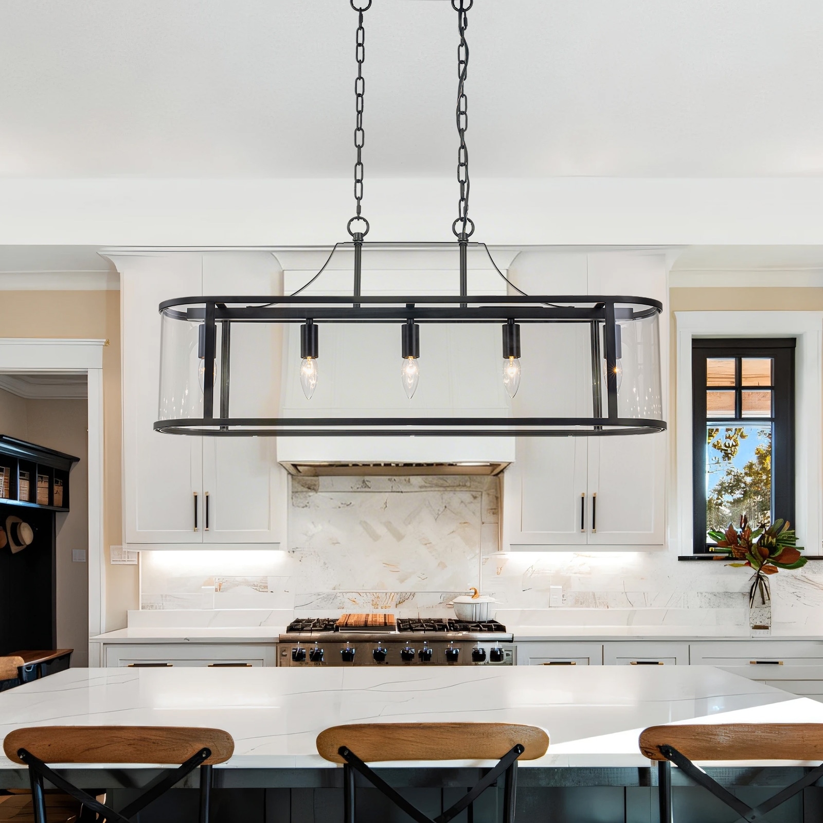 33 in. Rectangular Linear Kitchen Island Chandelier with Glass