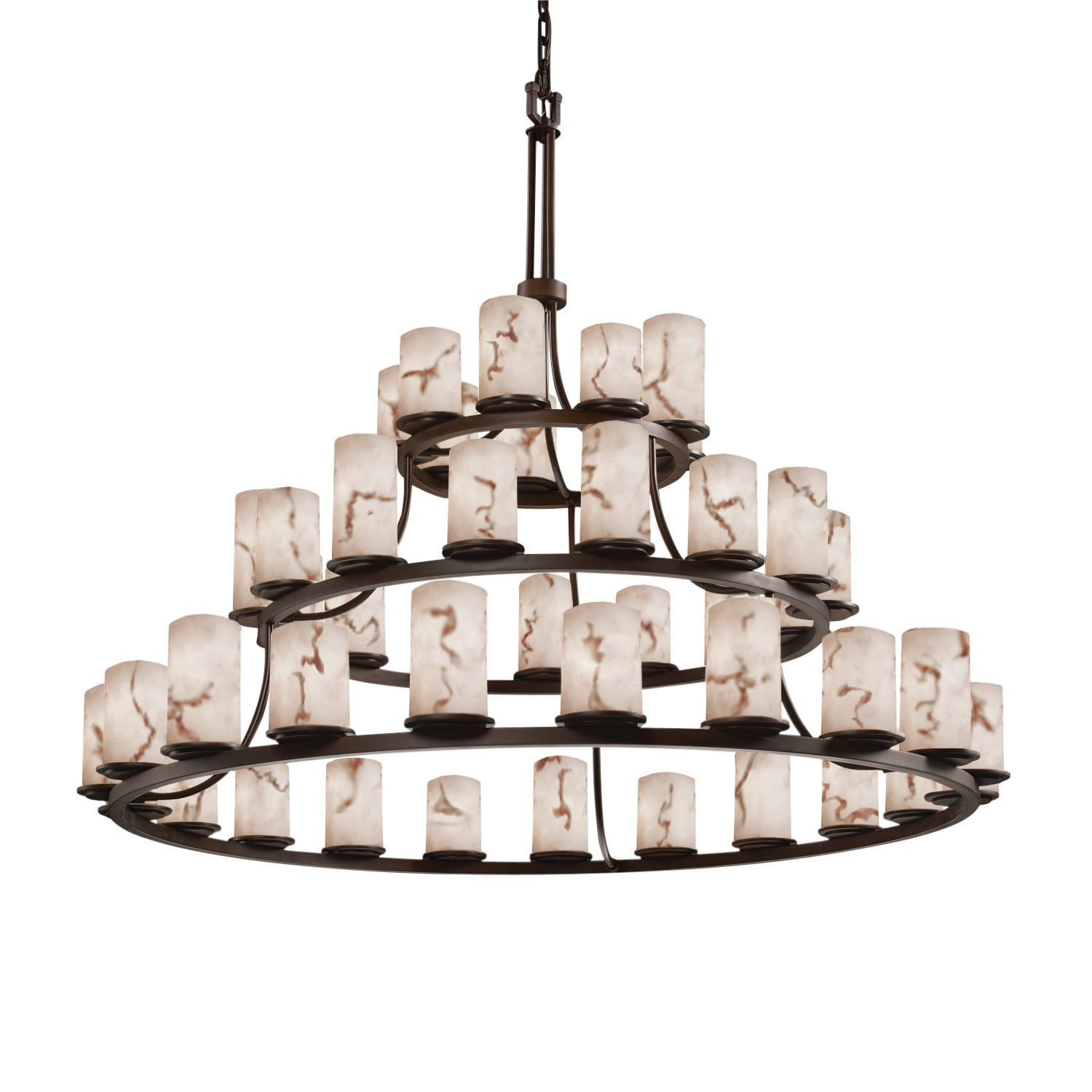 Justice Design LumenAria - Dakota 45-Light 3-Tier Ring Chandelier - Cylinder w/ Flat Rim Shade - Replaceable Bulb