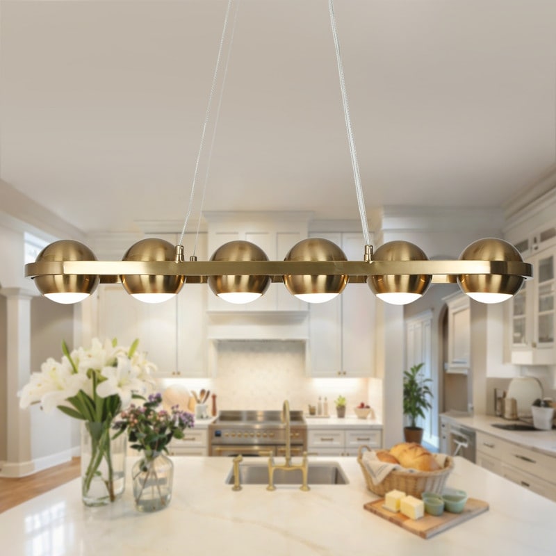 Modern 6-Light LED Gold Chandelier Linear Island Lights for Dining Room - 29.5" L x 4" H