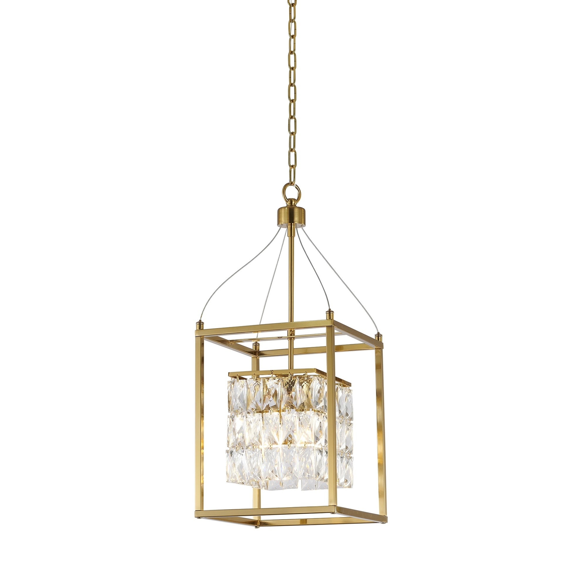 4-Light Antique Brass Cage Chandelier With Clear Crystals