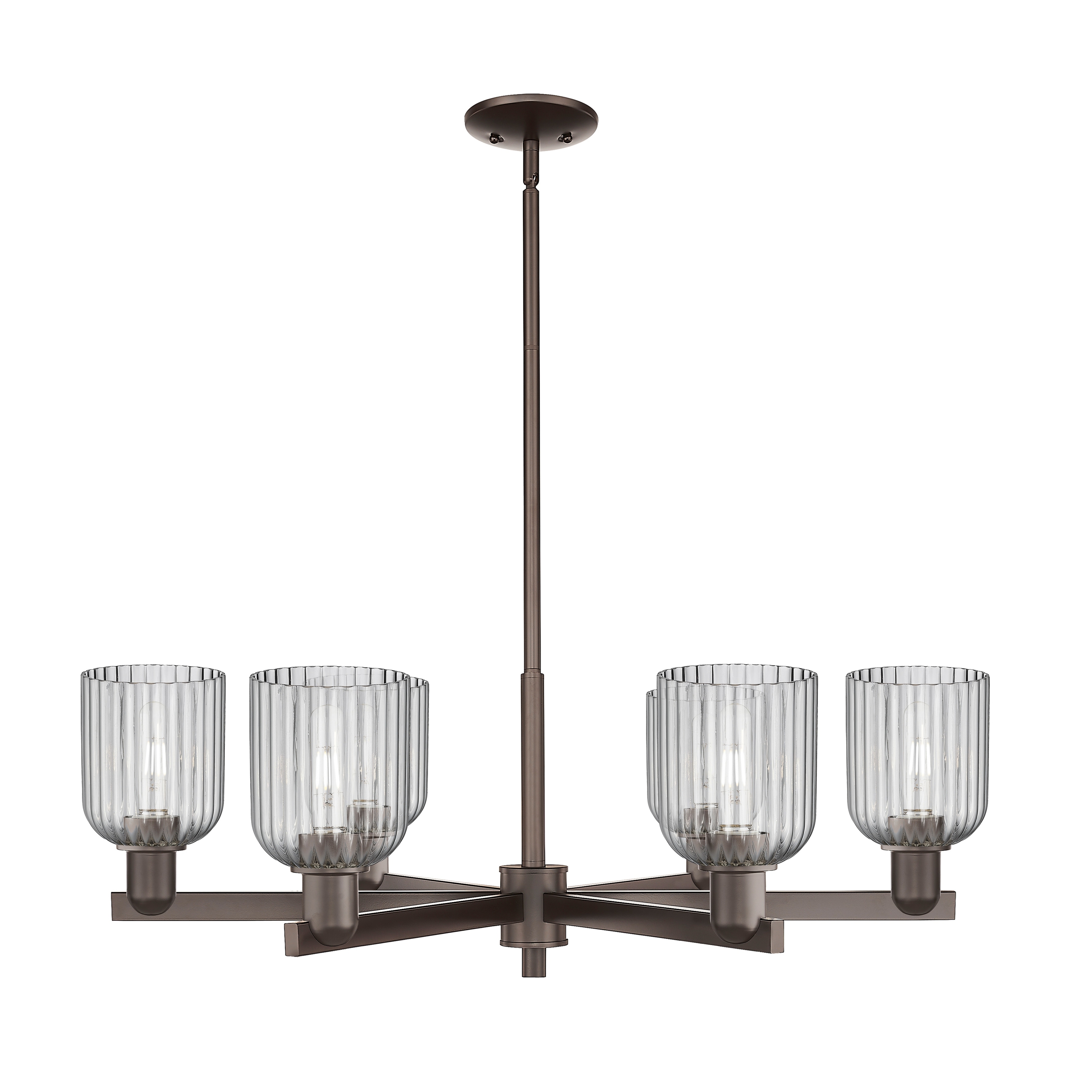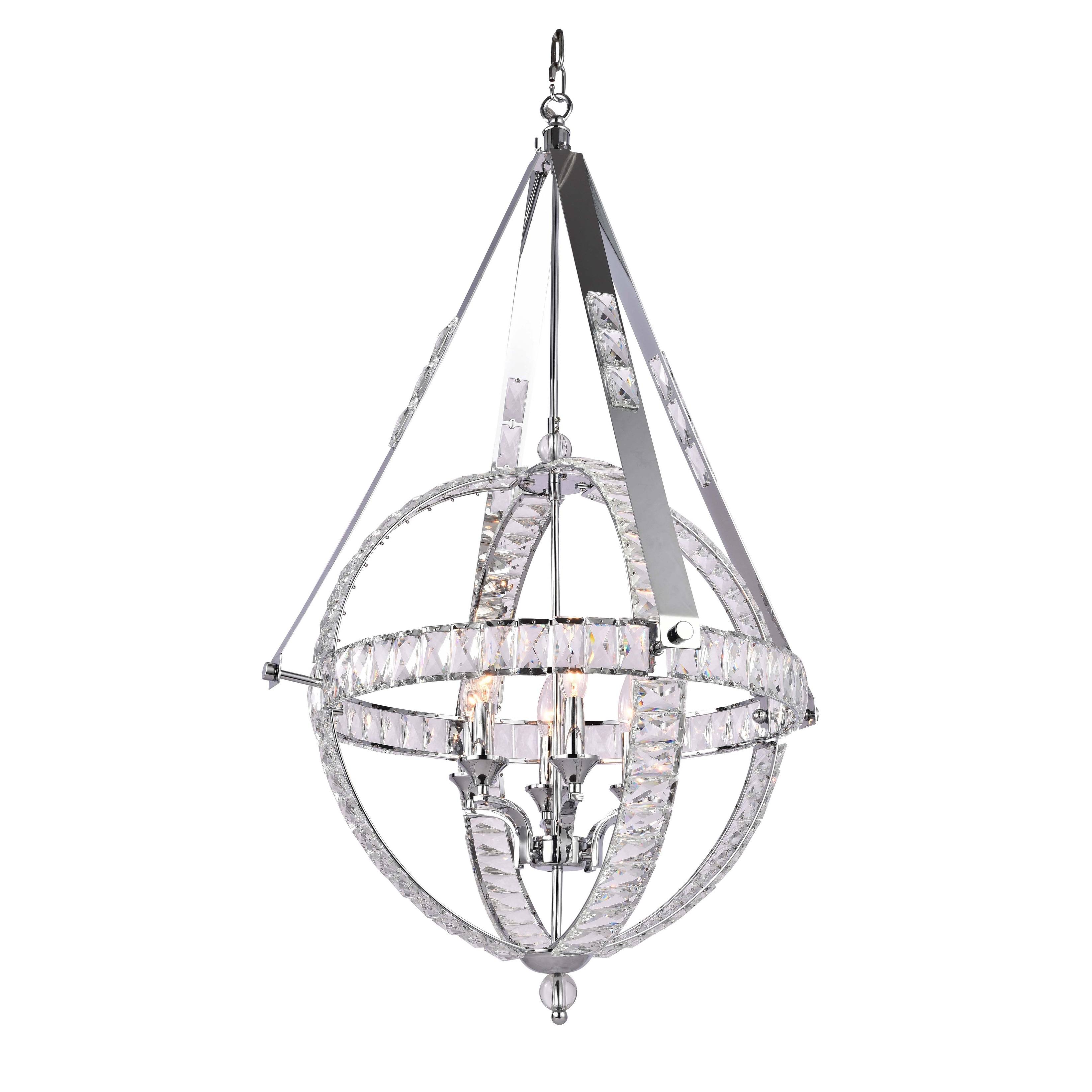 6-Light Chrome Metal Chandelier With Clear Crystals
