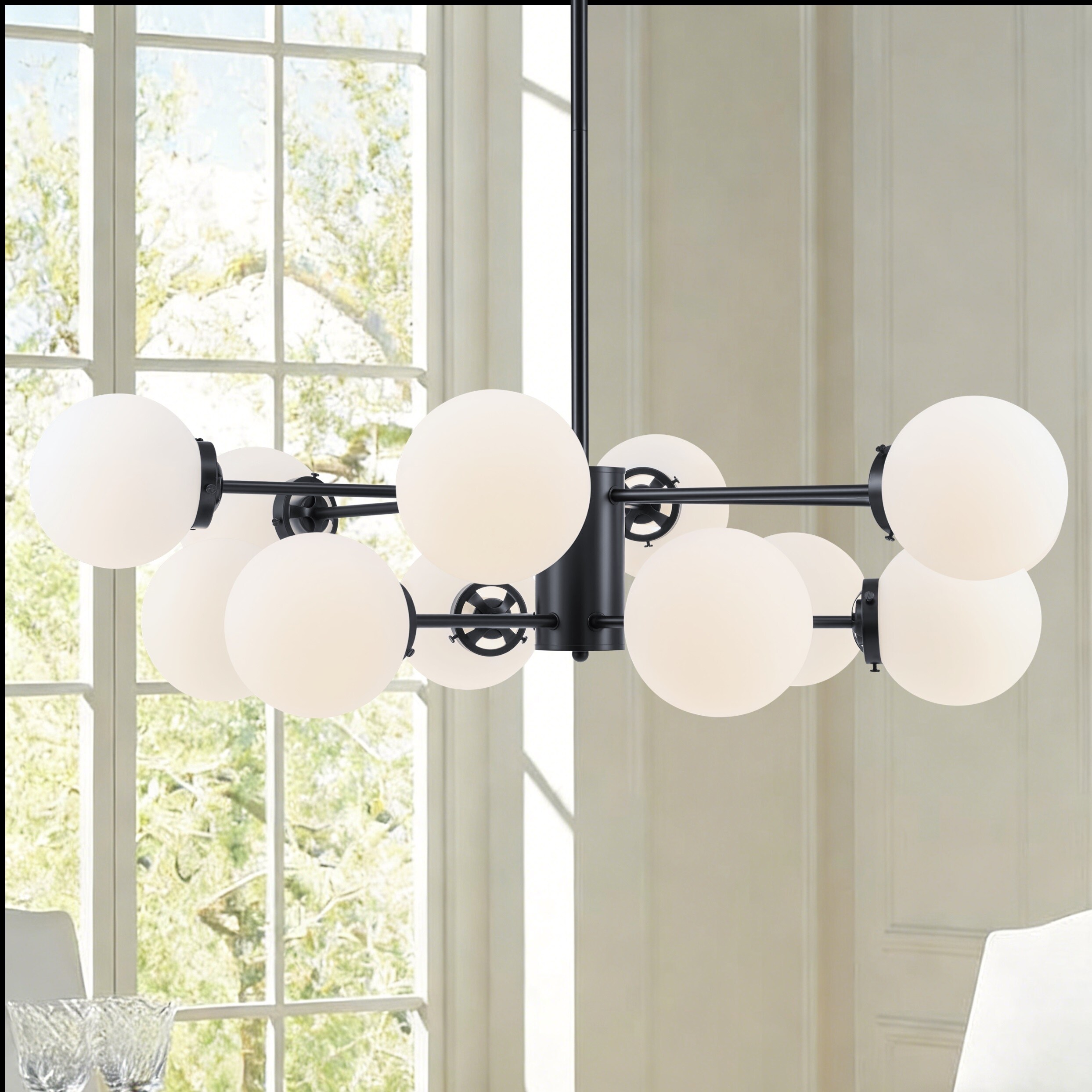 CO-Z Dimmable Modern Linear Sputnik Pendant Chandelier with Frosted Glass Globe Shades (6/8/12 - Light)