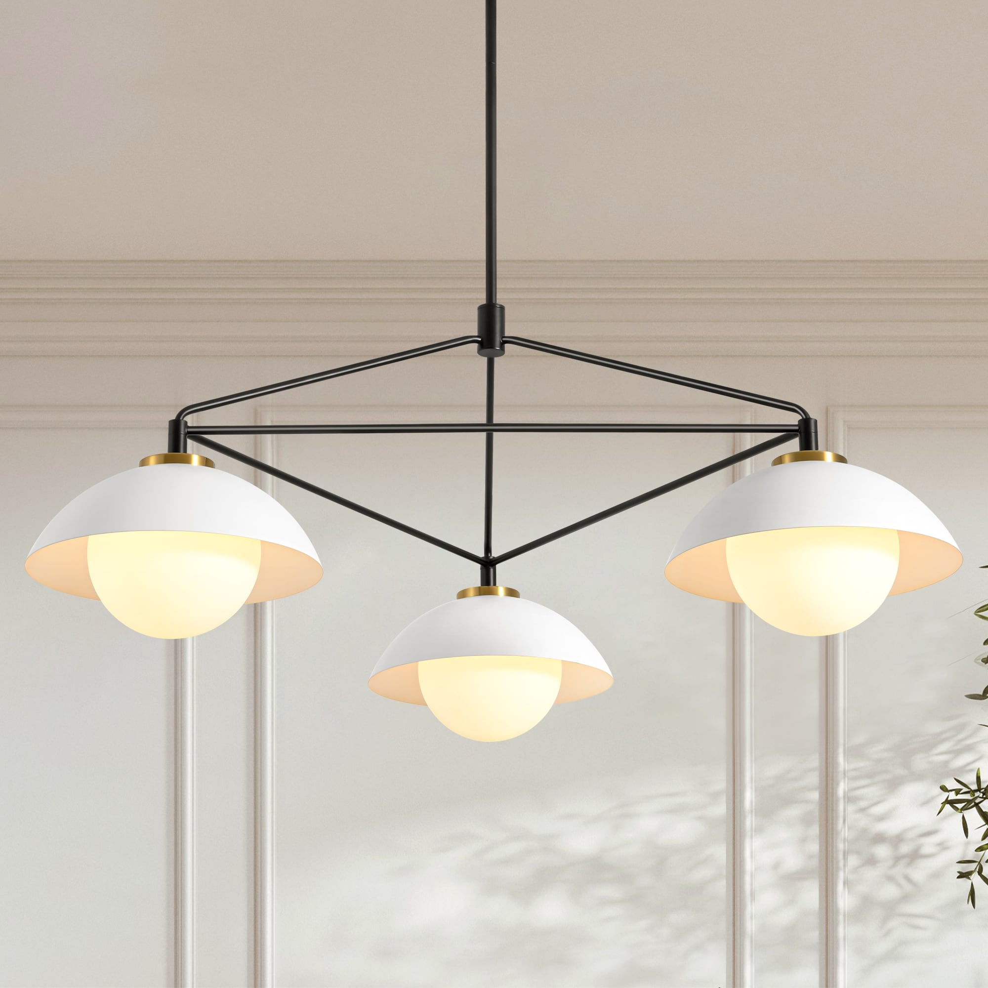41.9" 3-Light Modern Black Triangle Frame Chandelier with Opal Glass Globe Shades - 41.93 in. H x 17.32 in. H x 41.93 in. D