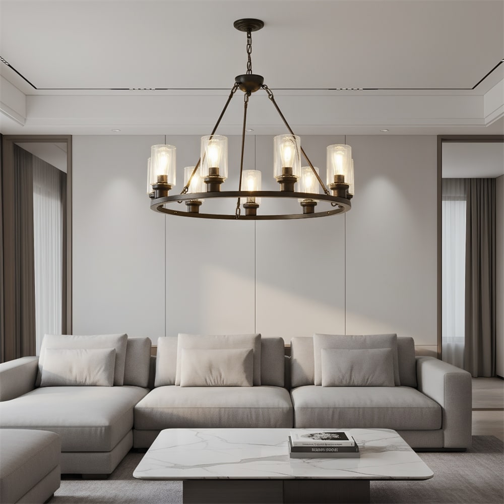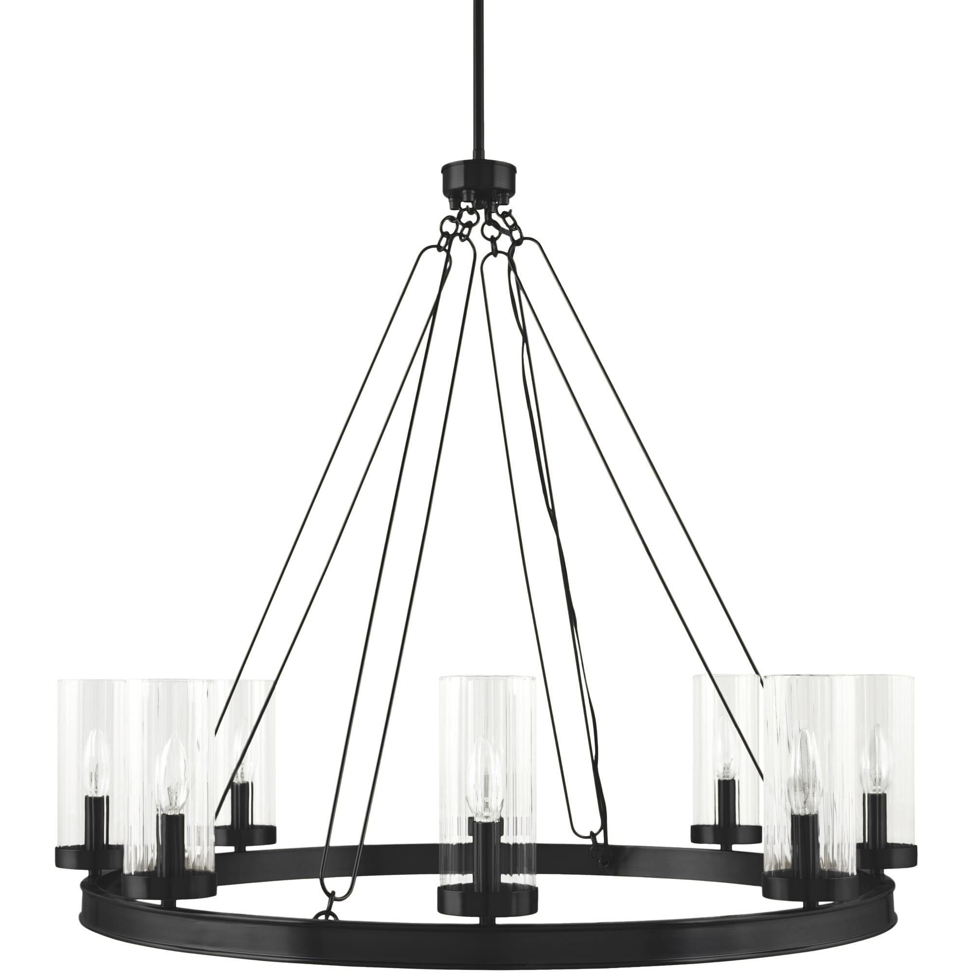 9-Light Black Wagon Wheel Chandelier With Light (No Bulbs)