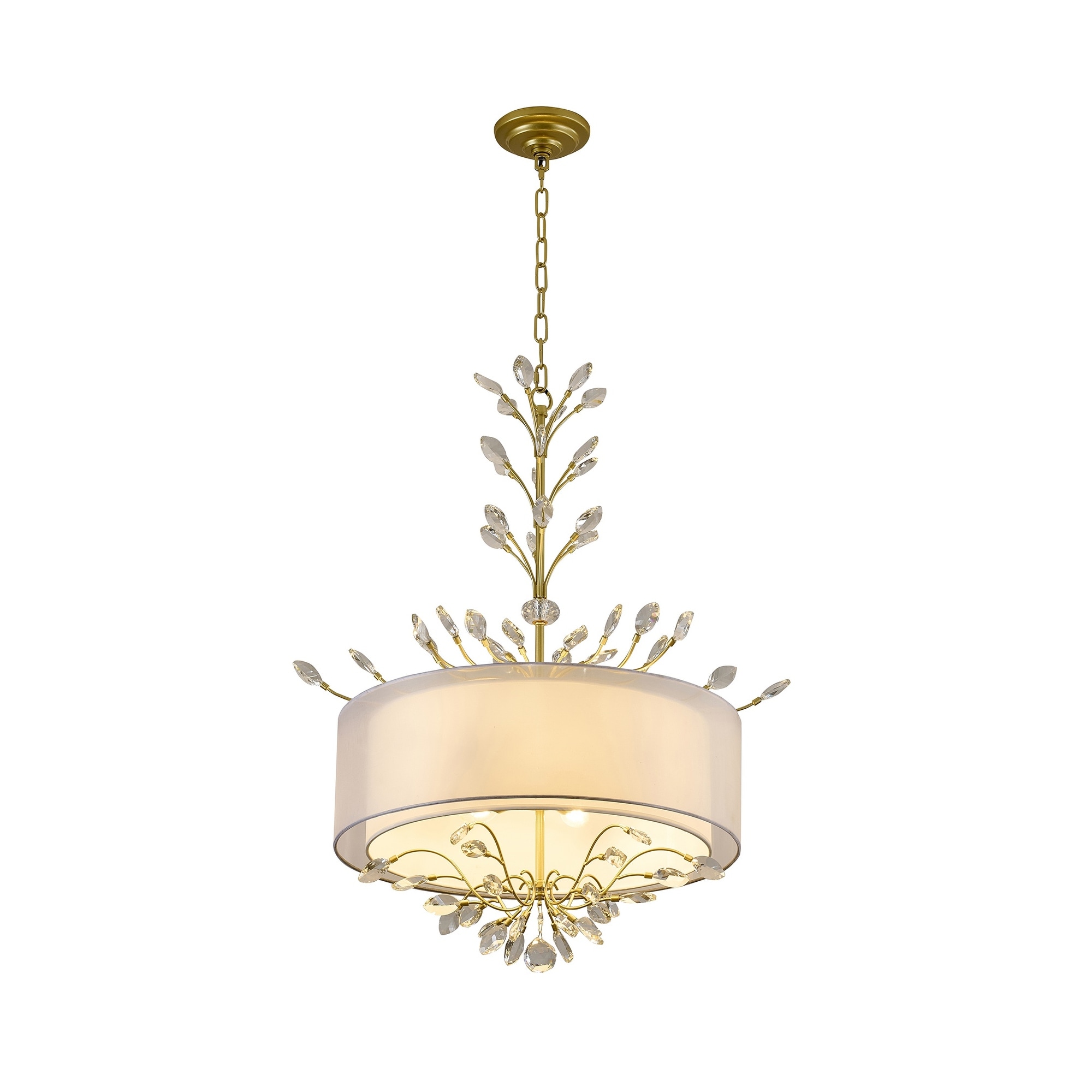 6-Light Aged Silver Branch Chandelier With A Fabric Shade And Crystals