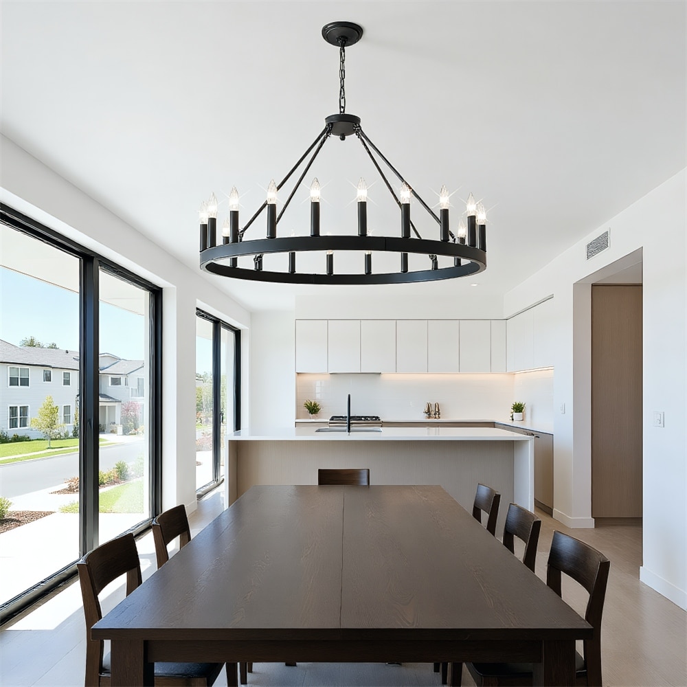 53.15 Inch Matte Black Wagon Wheel Chandelier With 30 Light (No Bulbs)