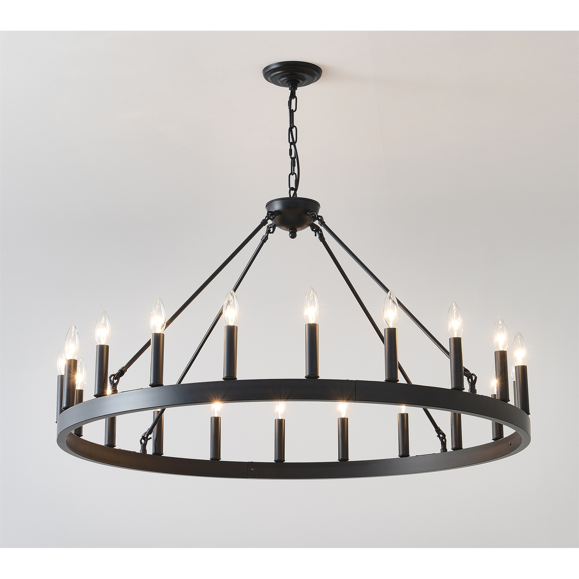 53.15 Inch Matte Black Wagon Wheel Chandelier With 18 light (No Bulbs)