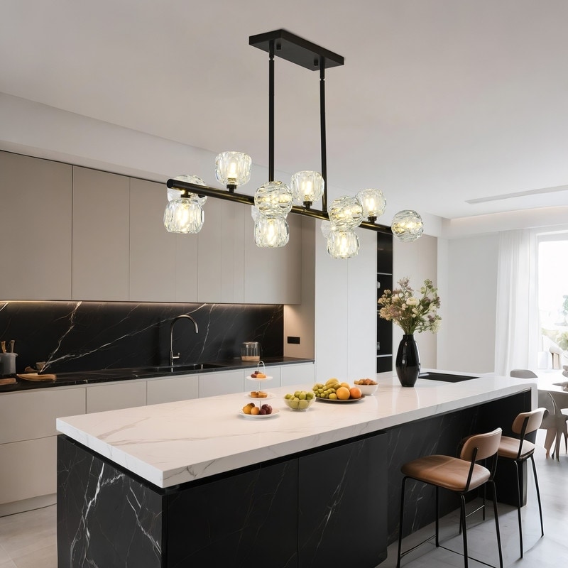 Modern Linear Pendant Lights Kitchen Island Chandelier Rectangle Crystal Ceiling Light for Dining Room
