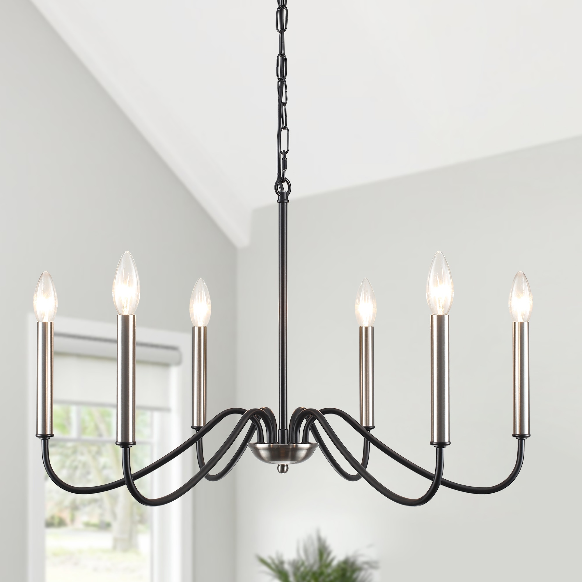 6-Light Farmhouse Candlestick Circle Iron Wagon Wheel Chandelier for Dining Room with No Bulbs Included
