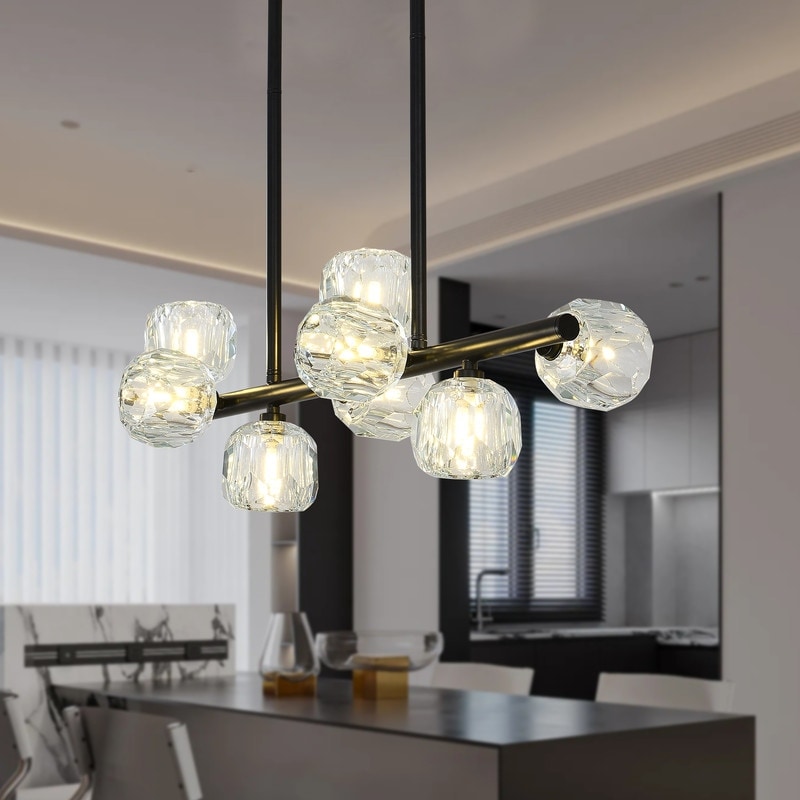 Modern Linear Pendant Lights Kitchen Island Chandelier Rectangle Crystal Ceiling Light for Dining Room