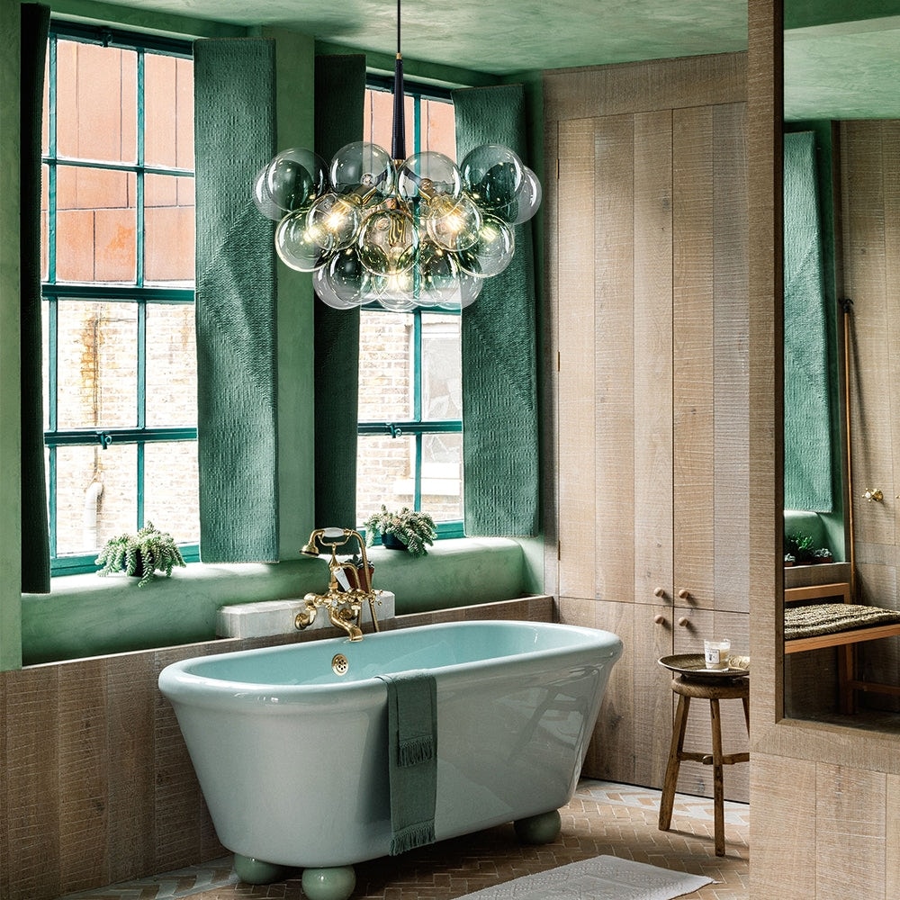 Glam Art Deco Cluster Glass Globe Green Bubble Chandelier