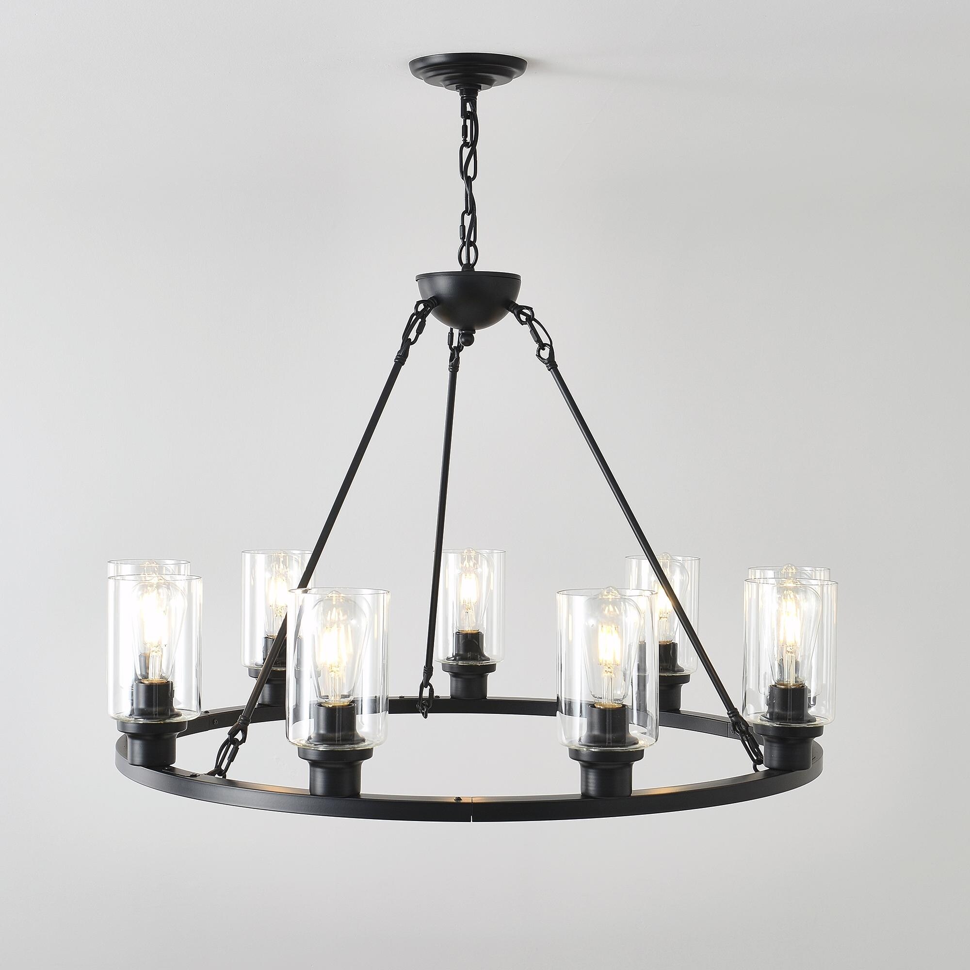 Black Metal Farmhouse Chandelier with Seeded Glass