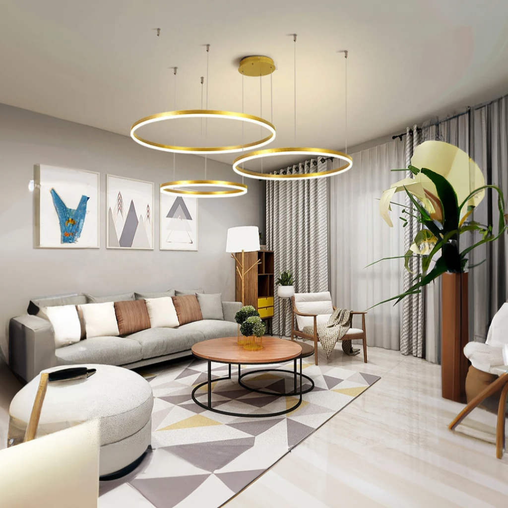 Skyla | Modern Hanging Chandelier | Gold / 15 Rings / Warm White (3000k) | MOD LIGHTING