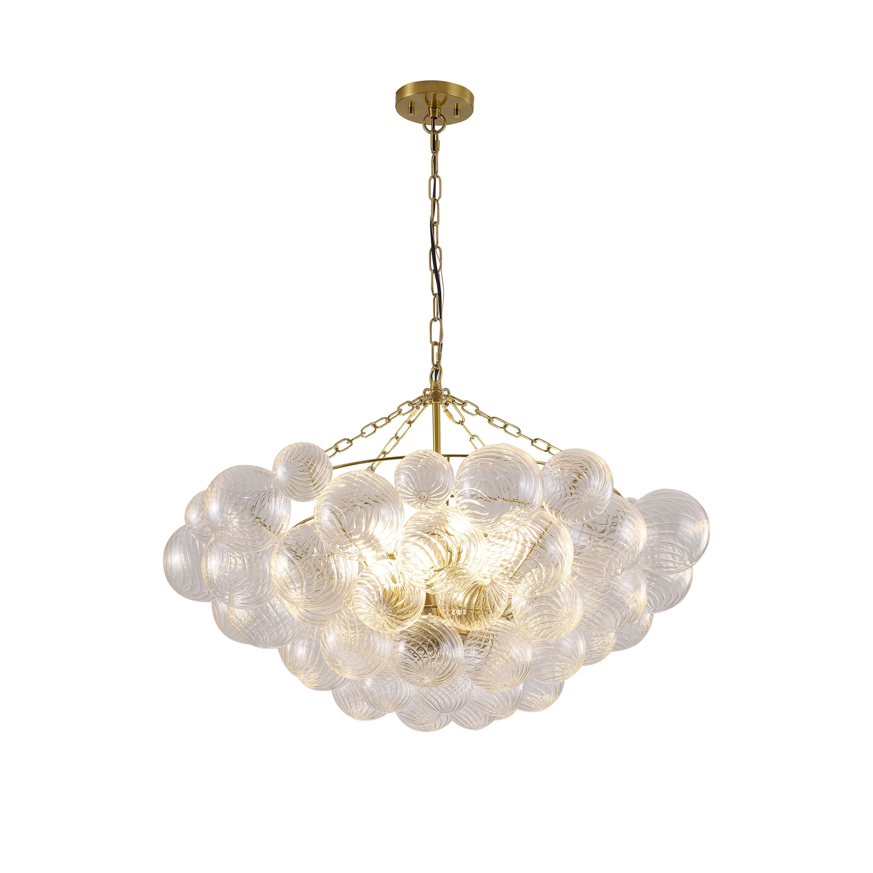 12-Light Brass Chandelier With Clear Swirl Glass Accents