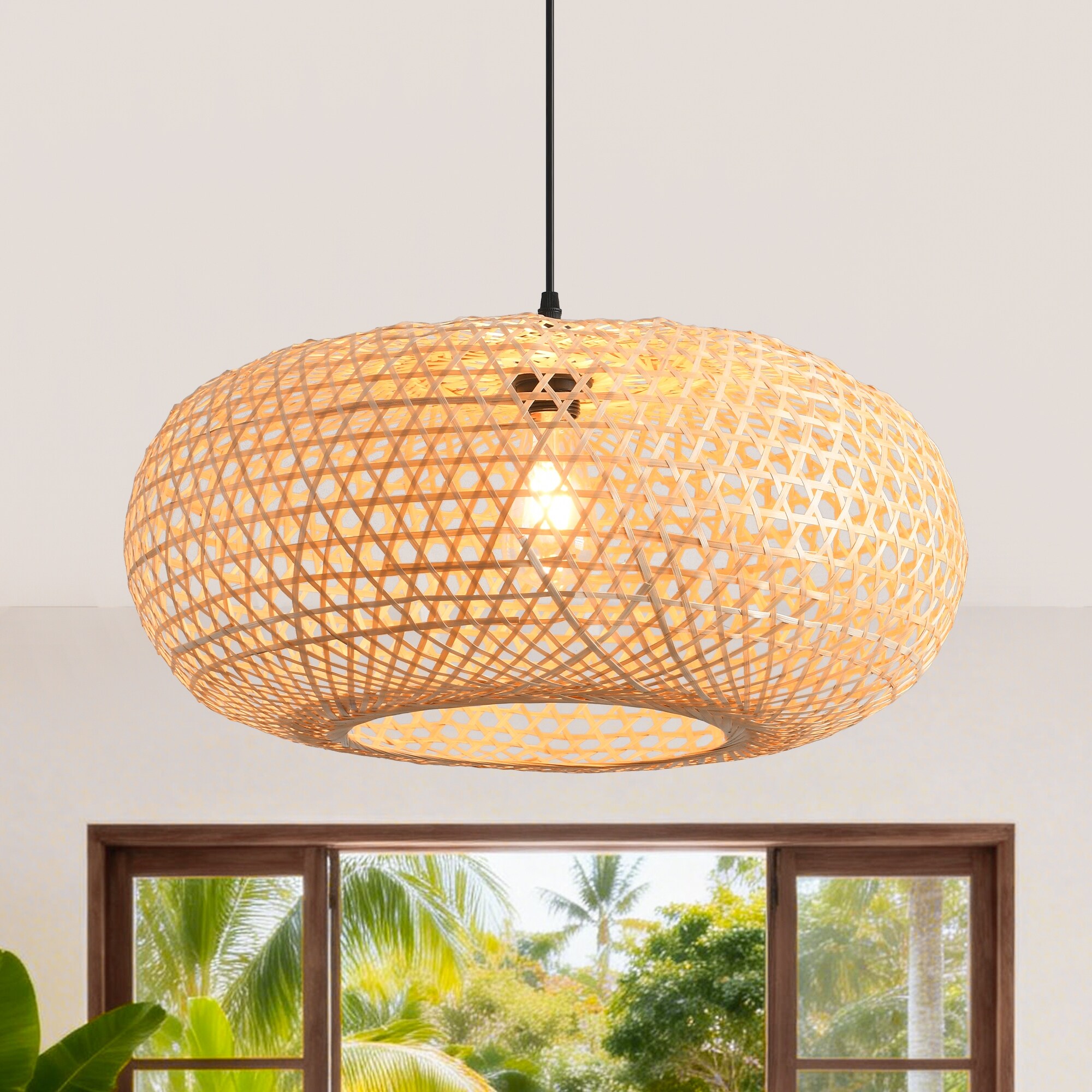 22" Bohemian Natural Bamboo Handmade Round Chandelier 1-Light Pendant Light
