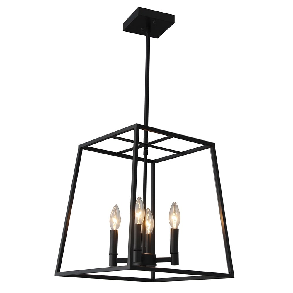4 Light Caged Chandelier in Matte Black Finish - 15"H x14"W x14"D