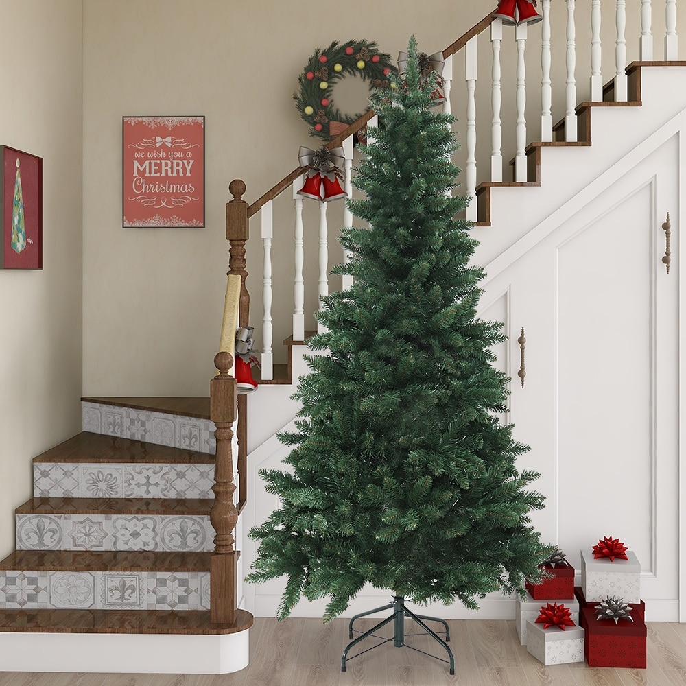 Real Tree Mimic Pre-Lit Artificial Christmas Tree with Fluffy PVC Branches, Folding Metal Base, and Easy 3-Step Assembly