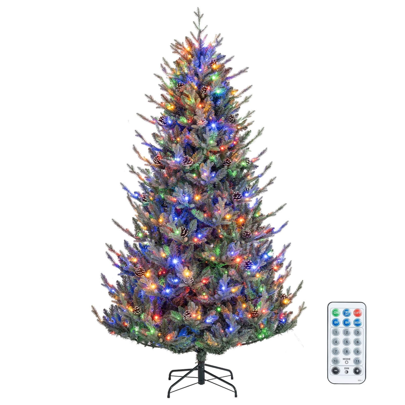 5/6/7ft Artificial Green Christmas Tree with LED Lights, Pine Cones