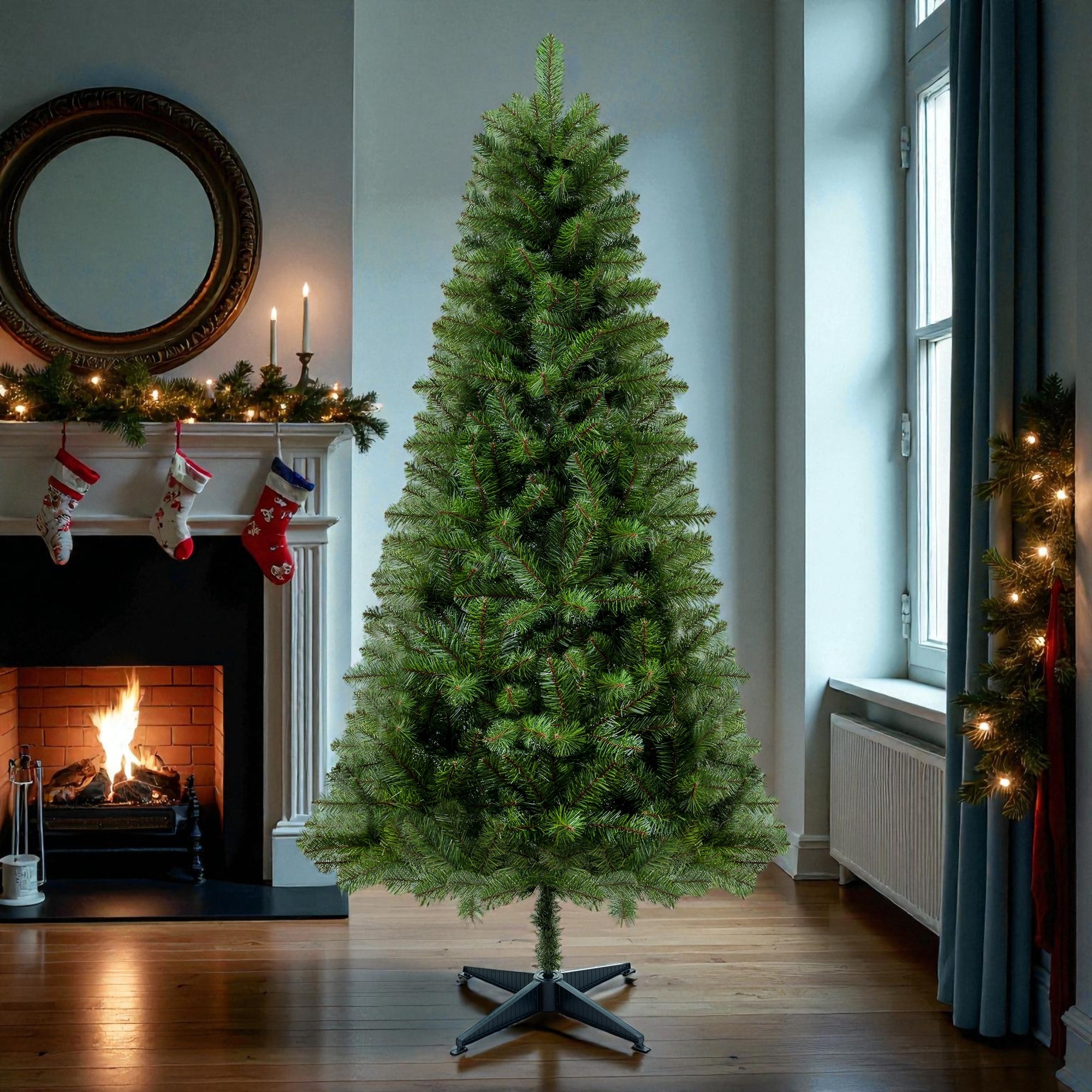 6ft Artificial Pencil Christmas Tree, Slim Design, 390 Realistic Tips