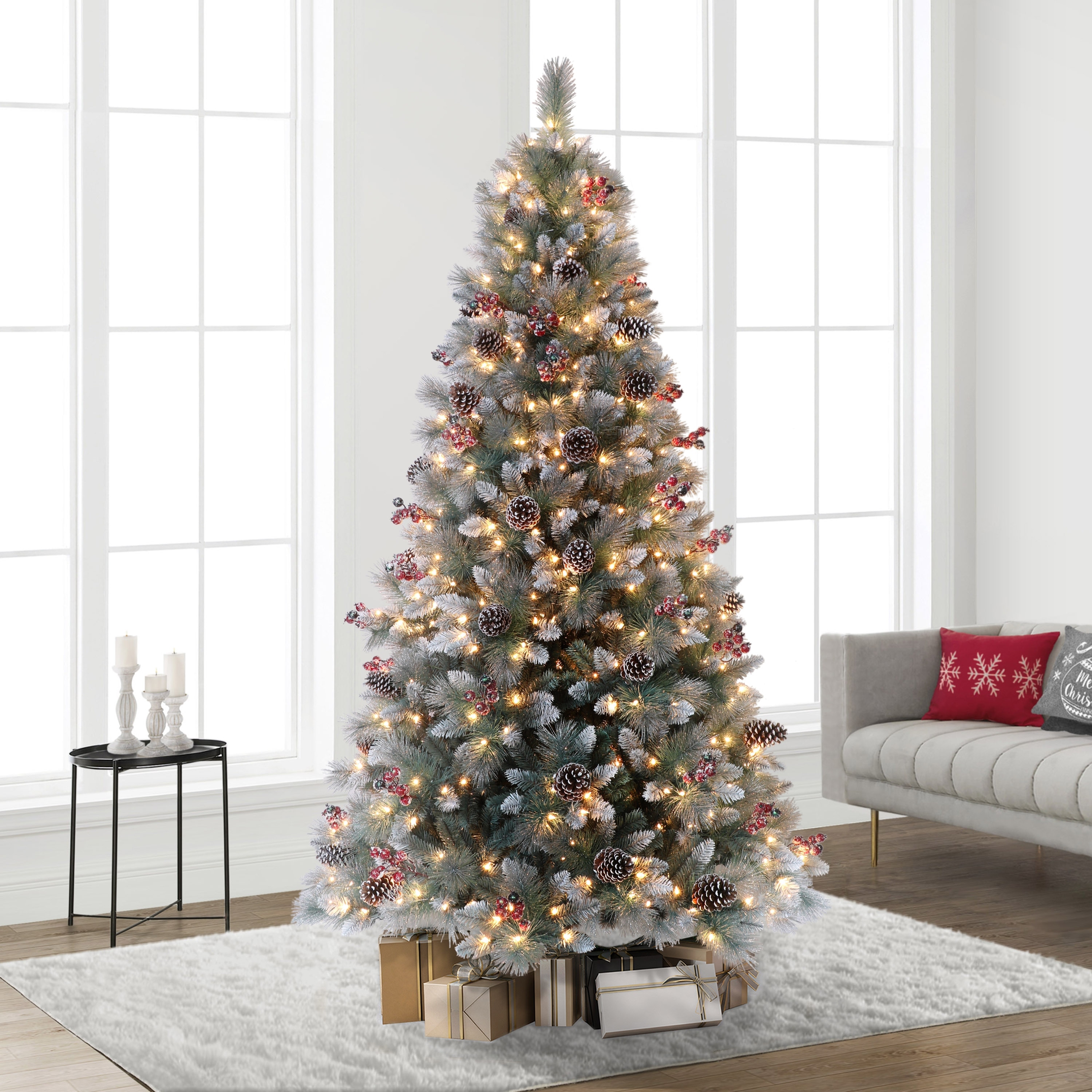 Flocked Pre-Lit Christmas Tree with Warm White Lights
