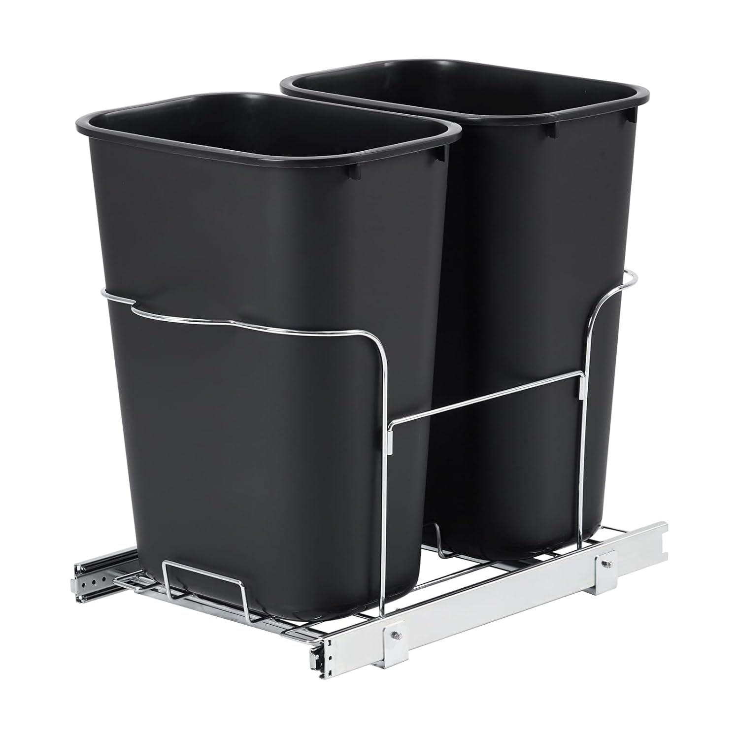 2×25QT Pull Out Trash Can, Under Cabinet Dual Waste Bin with Full Extension Slides, Easy to Install