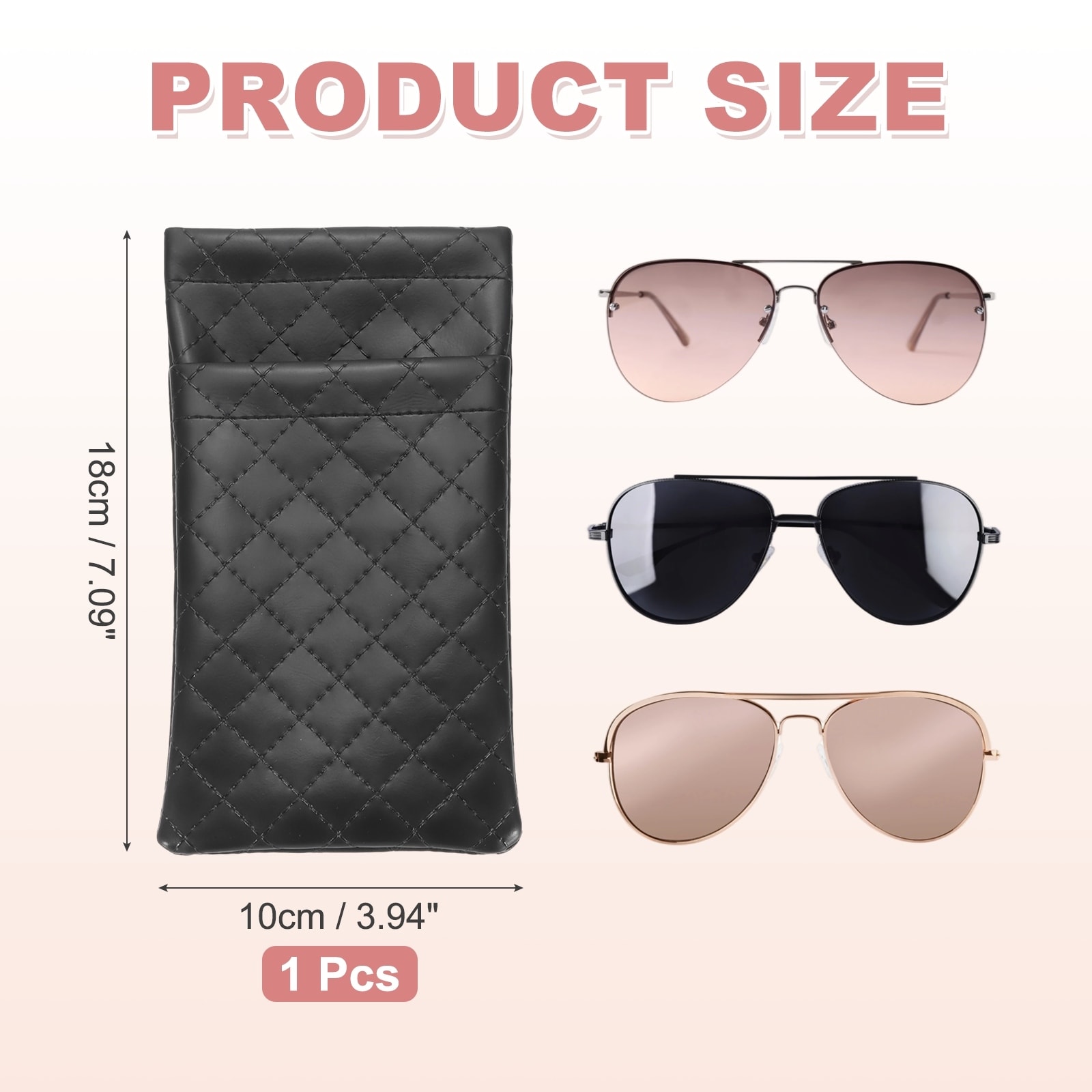 PU Leather Double Squeeze Top Eyeglass Pouch, Soft Eyeglass Case Organizer, Pack of