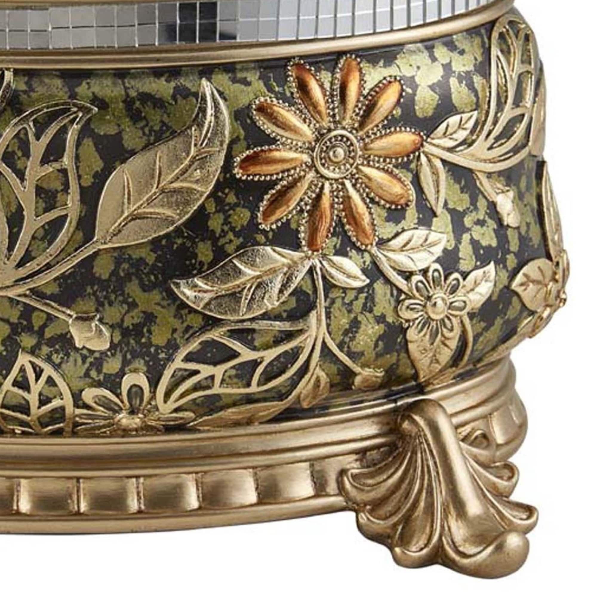 9.5" Long Leather Jewelry Organizer Case with Mirror, Gold Swirl Pattern, Black