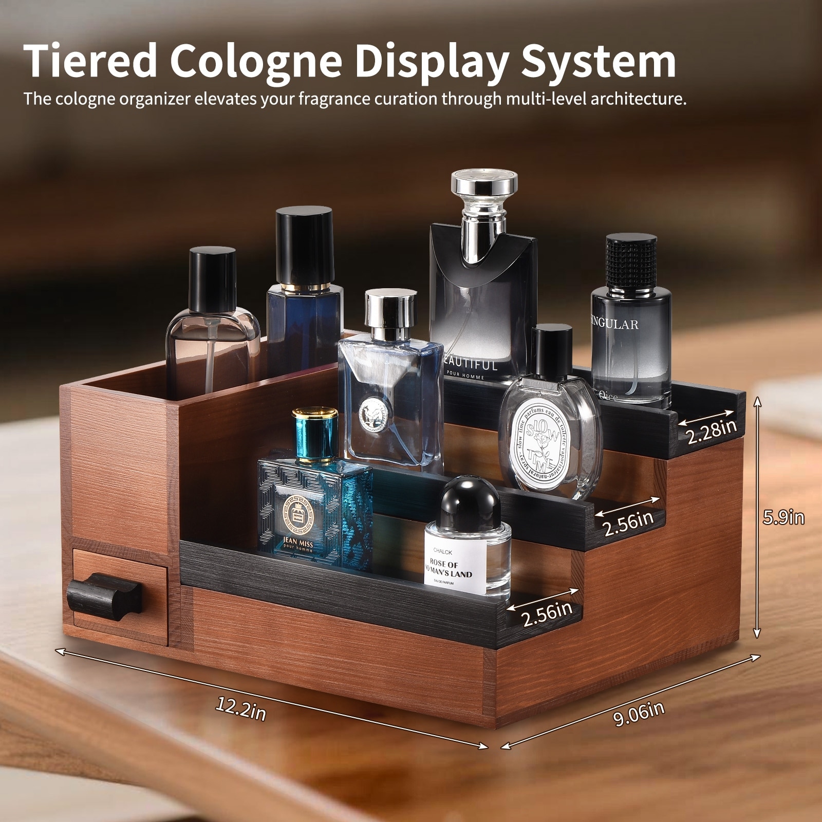 Perfume Stand Organizer for Men, Perfume Display Shelf with Velvet Lining Drawer and Hidden Compartment