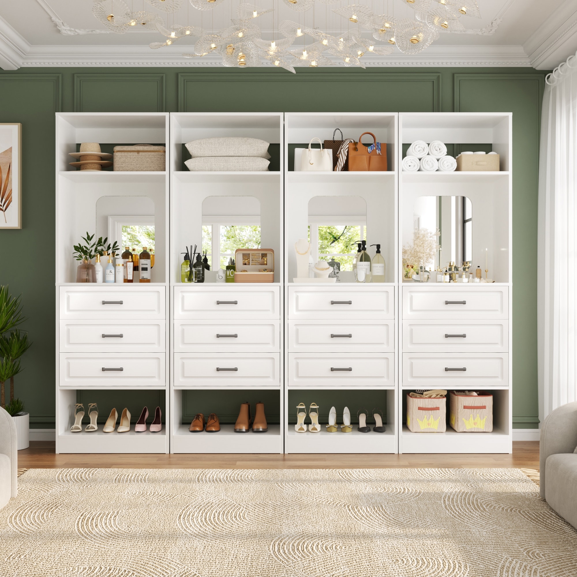 Cimly 25'' Freestanding Closet System with Drawers and Mirror, Display Shelves Organizer with Shelving