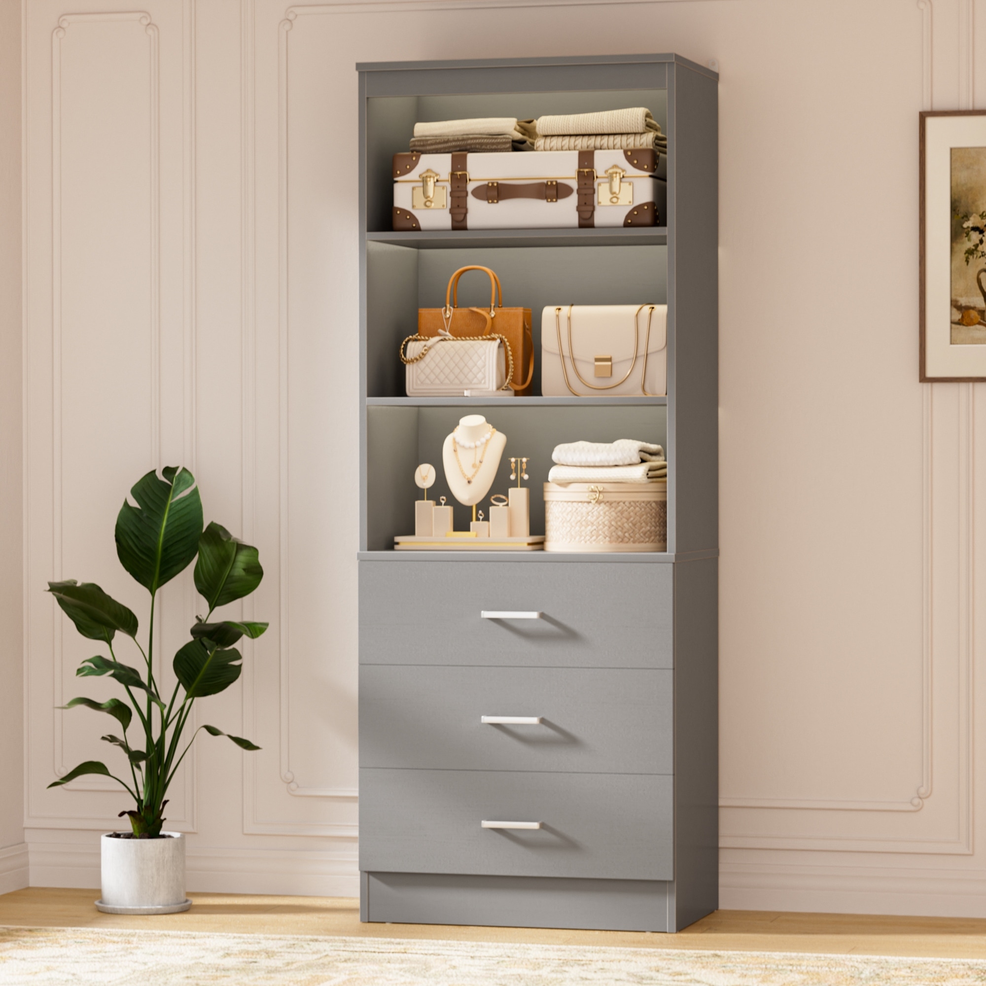 23.6" W Closet System with 3 Wooden Drawers and Storage Shelves, 2FT Sturdy Walk-in Organizer Storage Unit